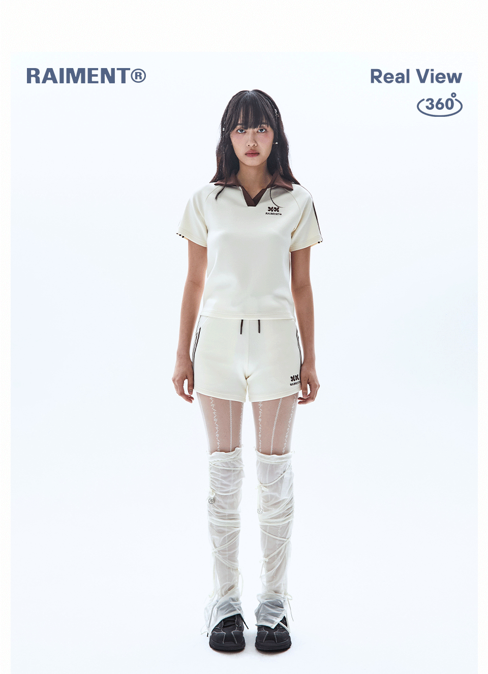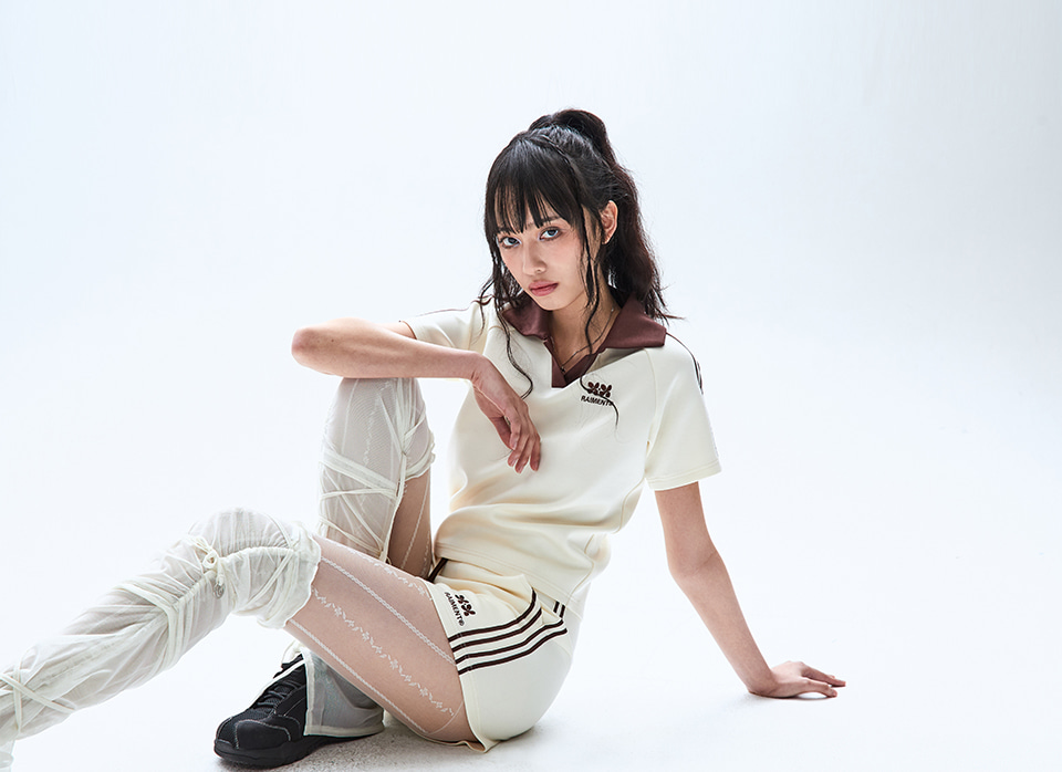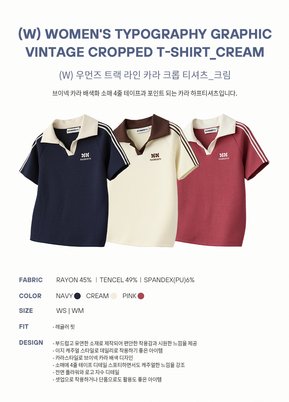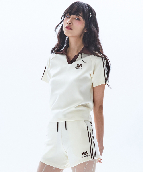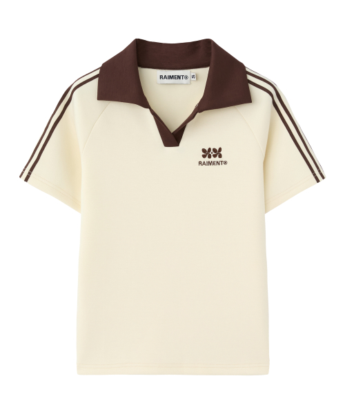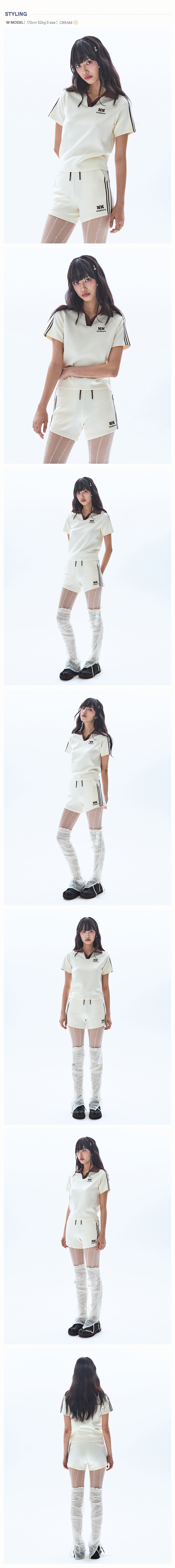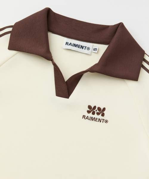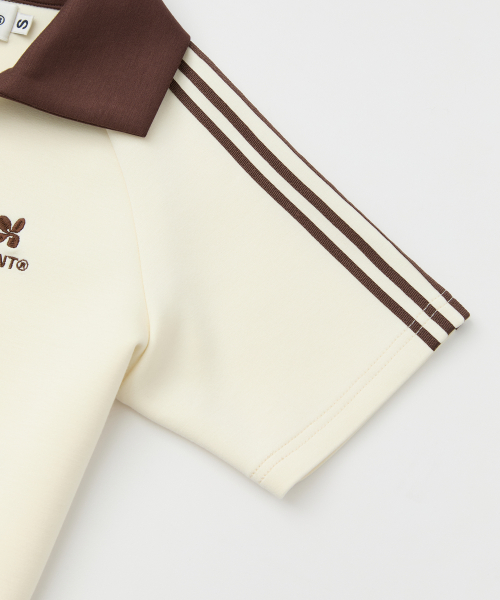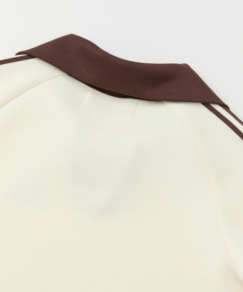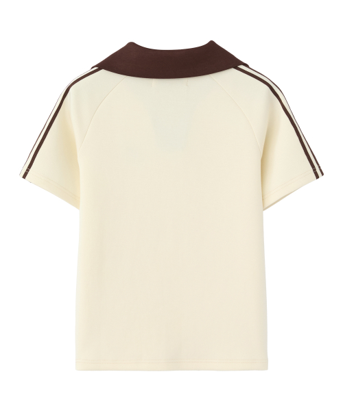 (W) 우먼즈 트랙 라인 카라 크롭 티셔츠_크림