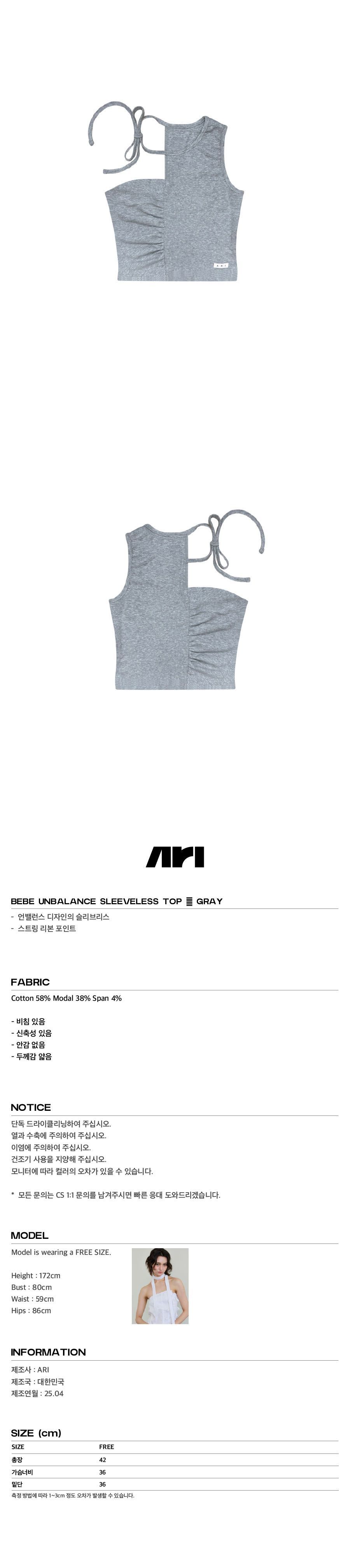 BEBE UNBALANCE SLEEVELESS TOP / GRAY