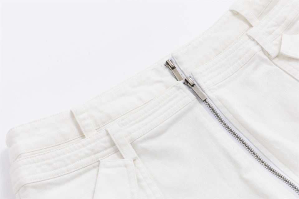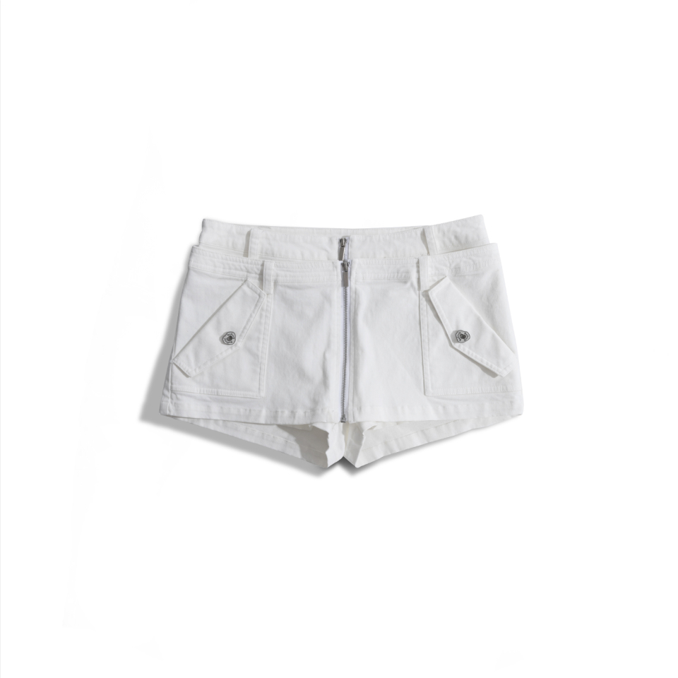 더블 웨스트 지퍼 미니 숏츠 - 화이트