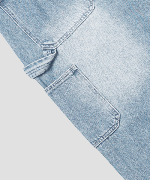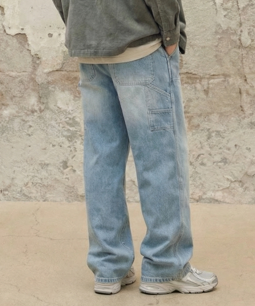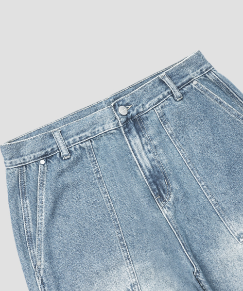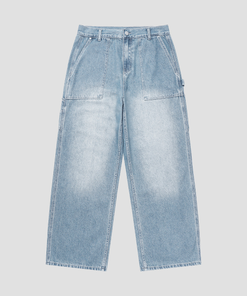 바이오워싱 카펜터 와이드 데님 팬츠 [라이트블루]