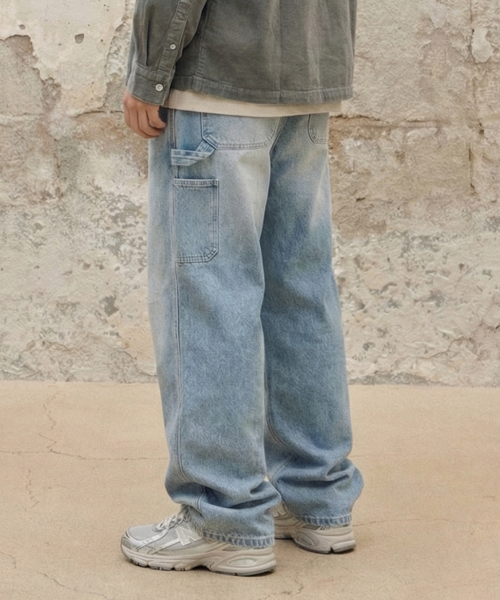 바이오워싱 카펜터 와이드 데님 팬츠 [빈티지]