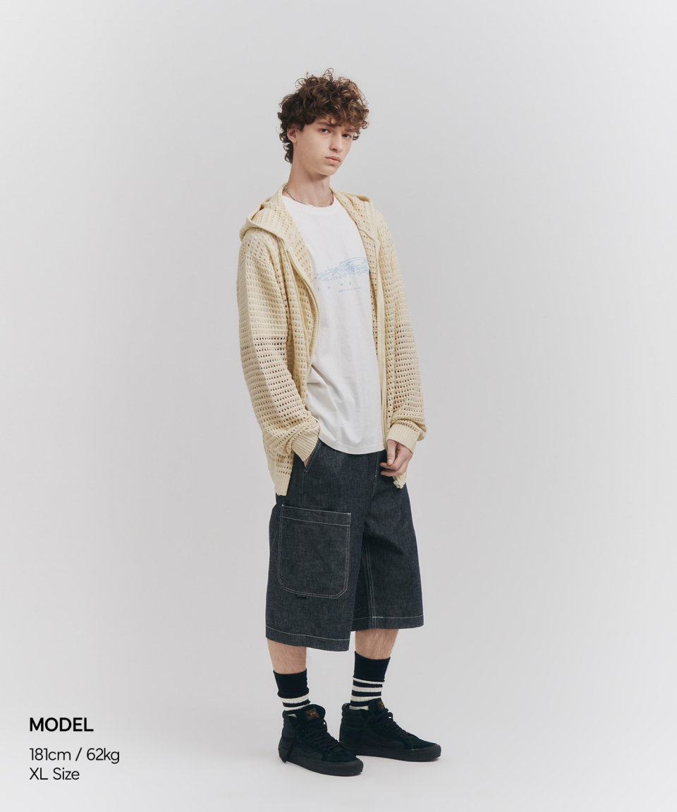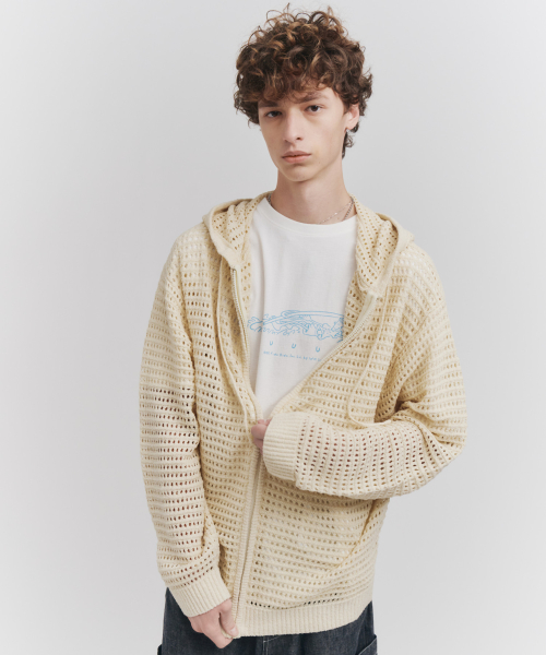 Net Knit Zip Hoodie Ivory