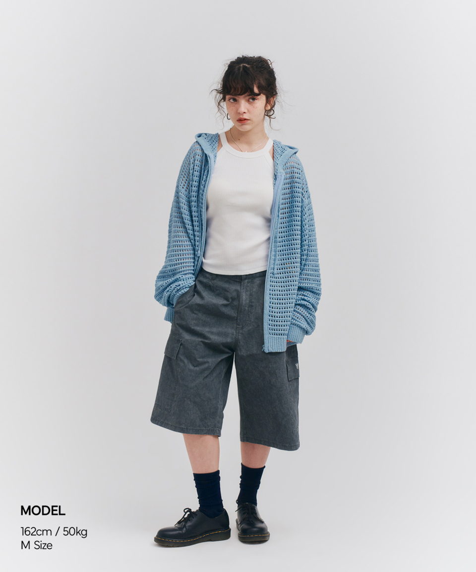 Net Knit Zip Hoodie Sky Blue