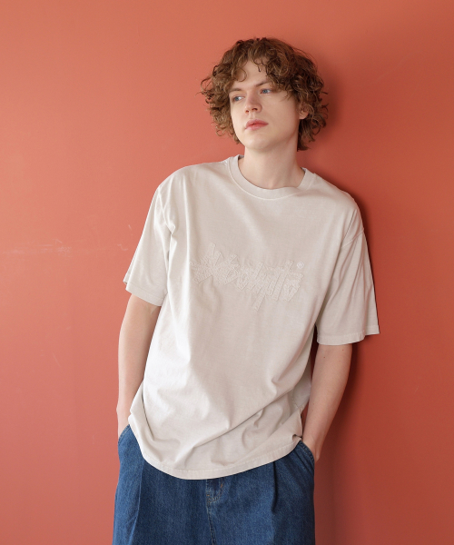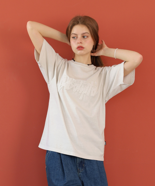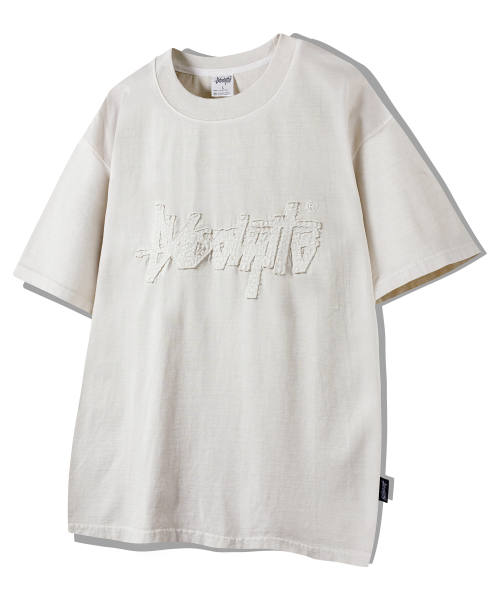 아플리케 자수 피그먼트 반팔티 크림 YT-306