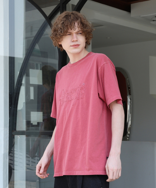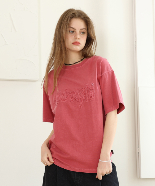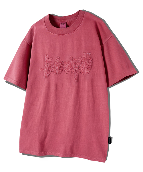 아플리케 자수 피그먼트 반팔티 와인 YT-306
