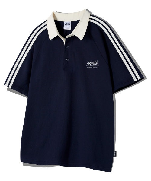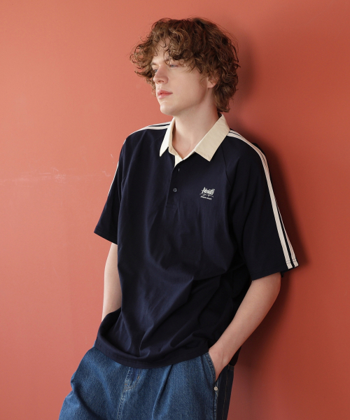 스포티한 감성을 강조한 래글런 럭비 카라 트랙 반팔티입니다.