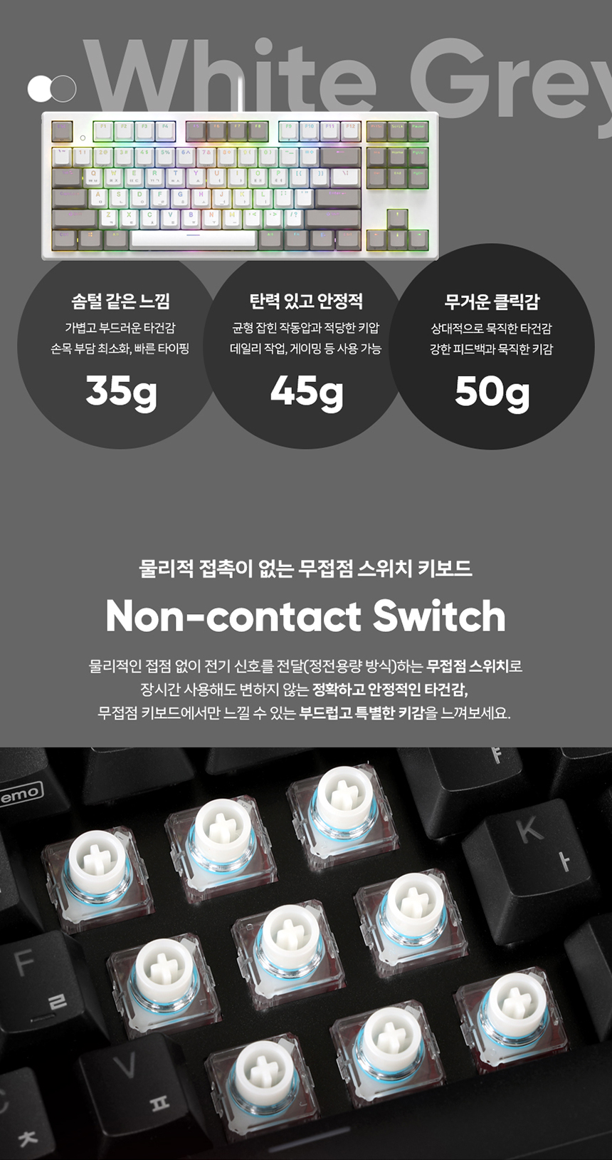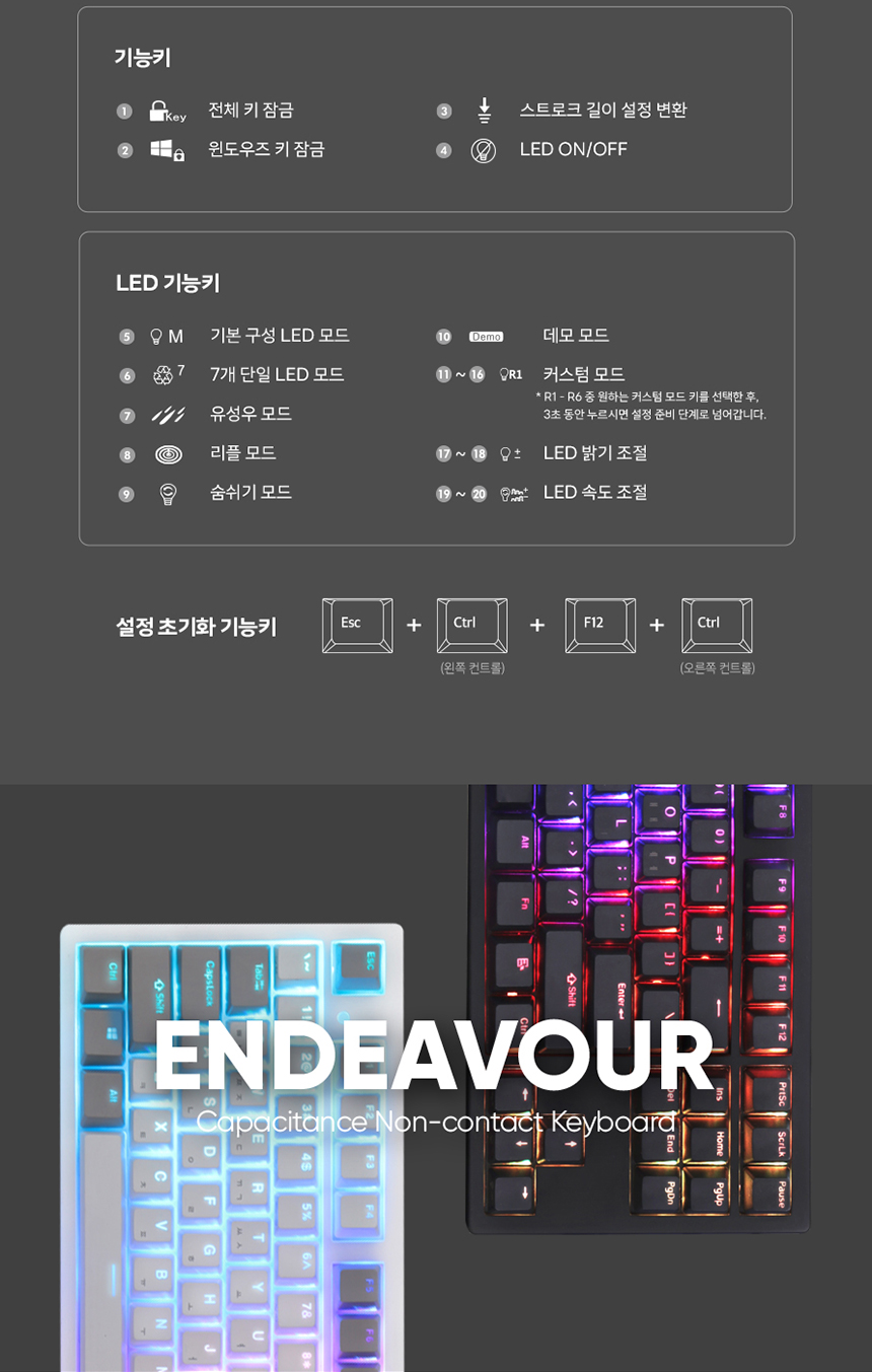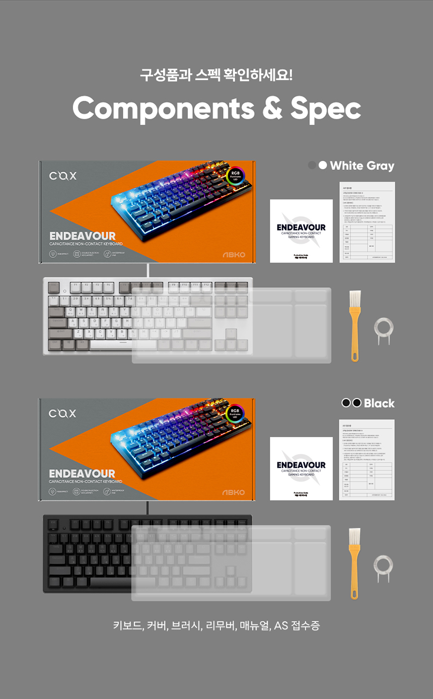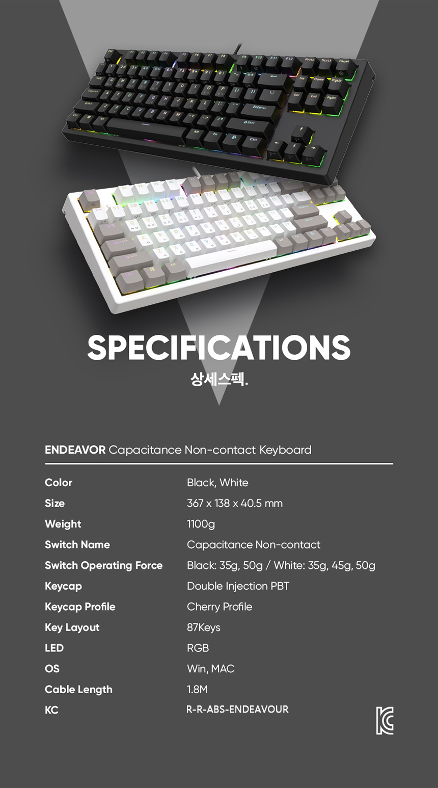 엔데버 텐키리스 RGB PBT 완전방수 무접점 화이트 45g