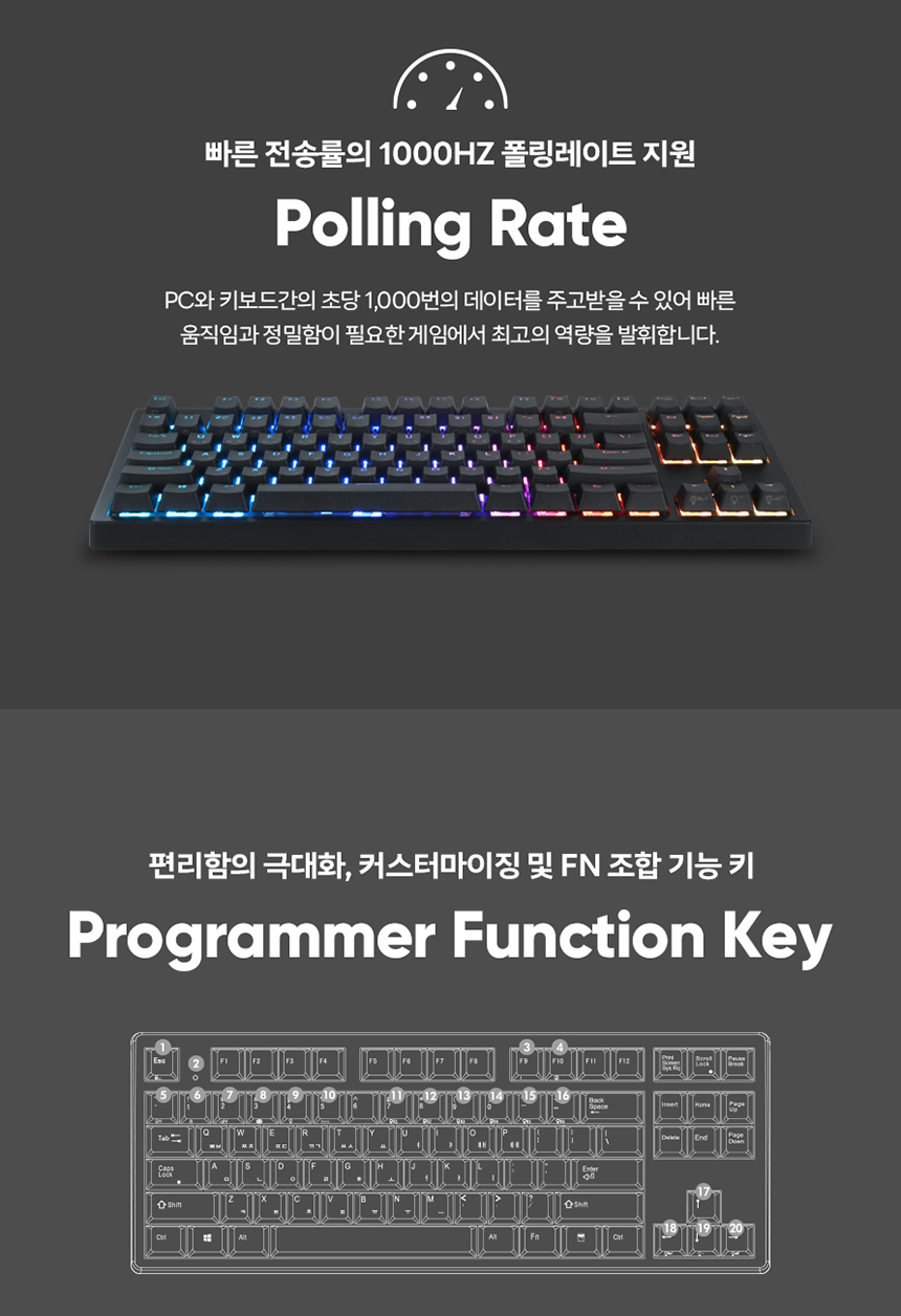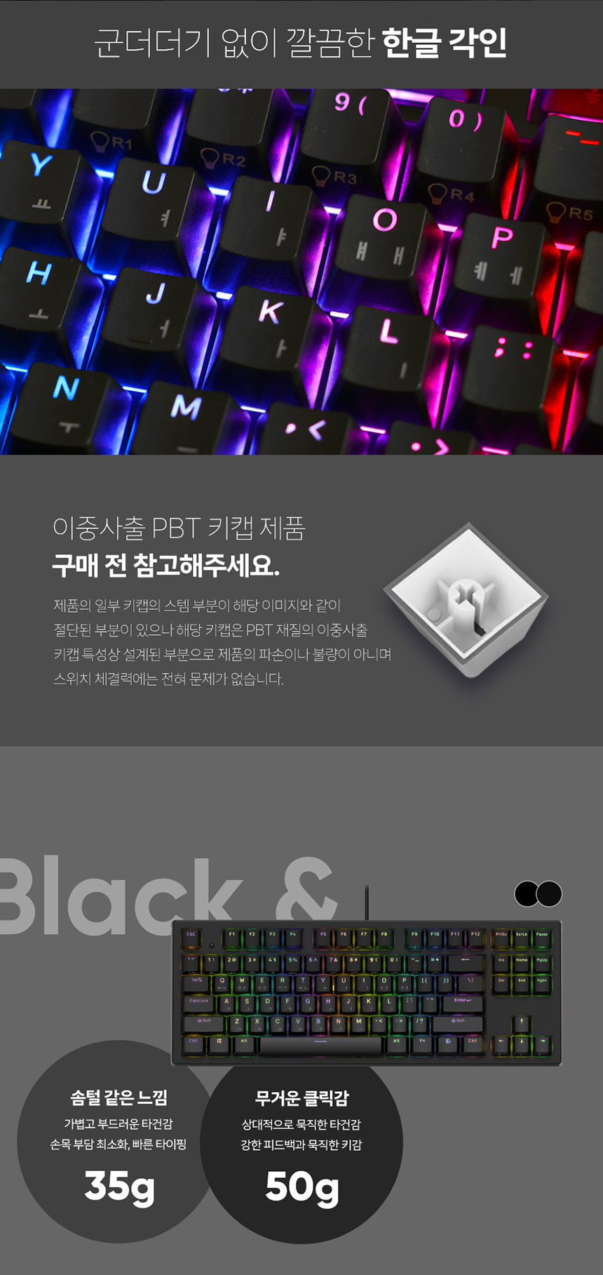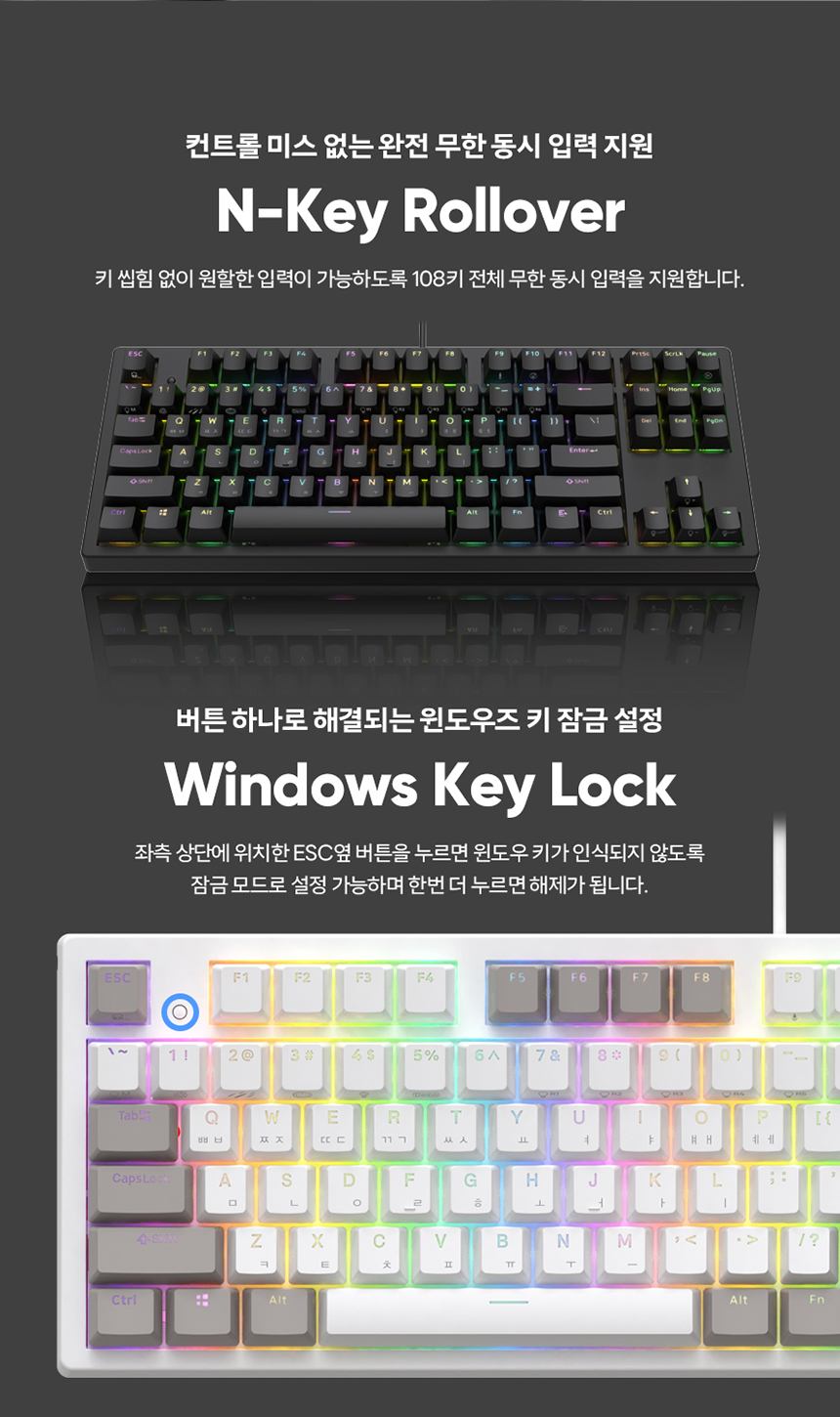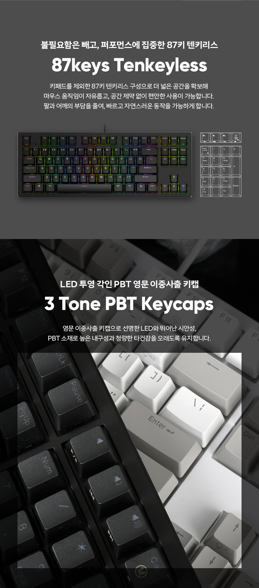 엔데버 텐키리스 RGB PBT 완전방수 무접점 화이트 45g