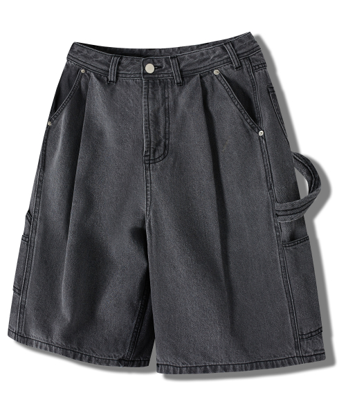 원턱 카펜터 버뮤다 데님 팬츠 그레이 YP-502