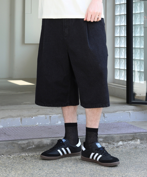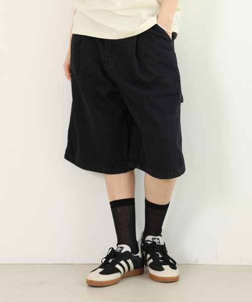 원턱 카펜터 버뮤다 데님 팬츠입니다.