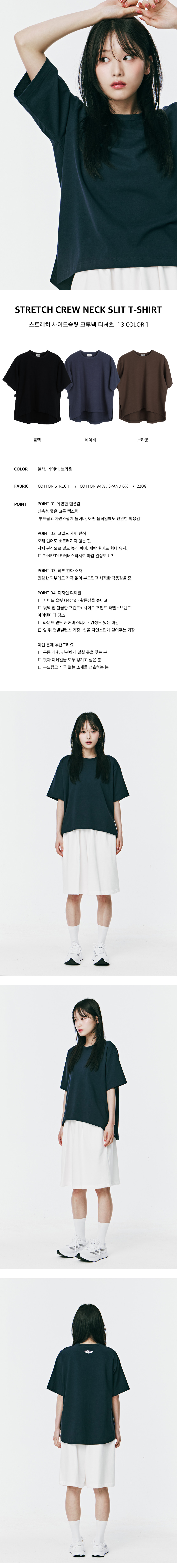 스트레치 사이드슬릿 크루넥 티셔츠[3 COLOR]