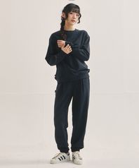 커버 스티치 스웨트 셔츠 셋업[네이비 블랙]