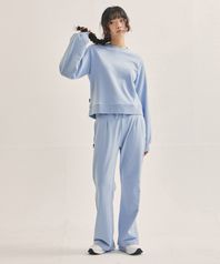퍼프 슬리브 크롭 스웨트 셔츠 셋업[스카이블루]
