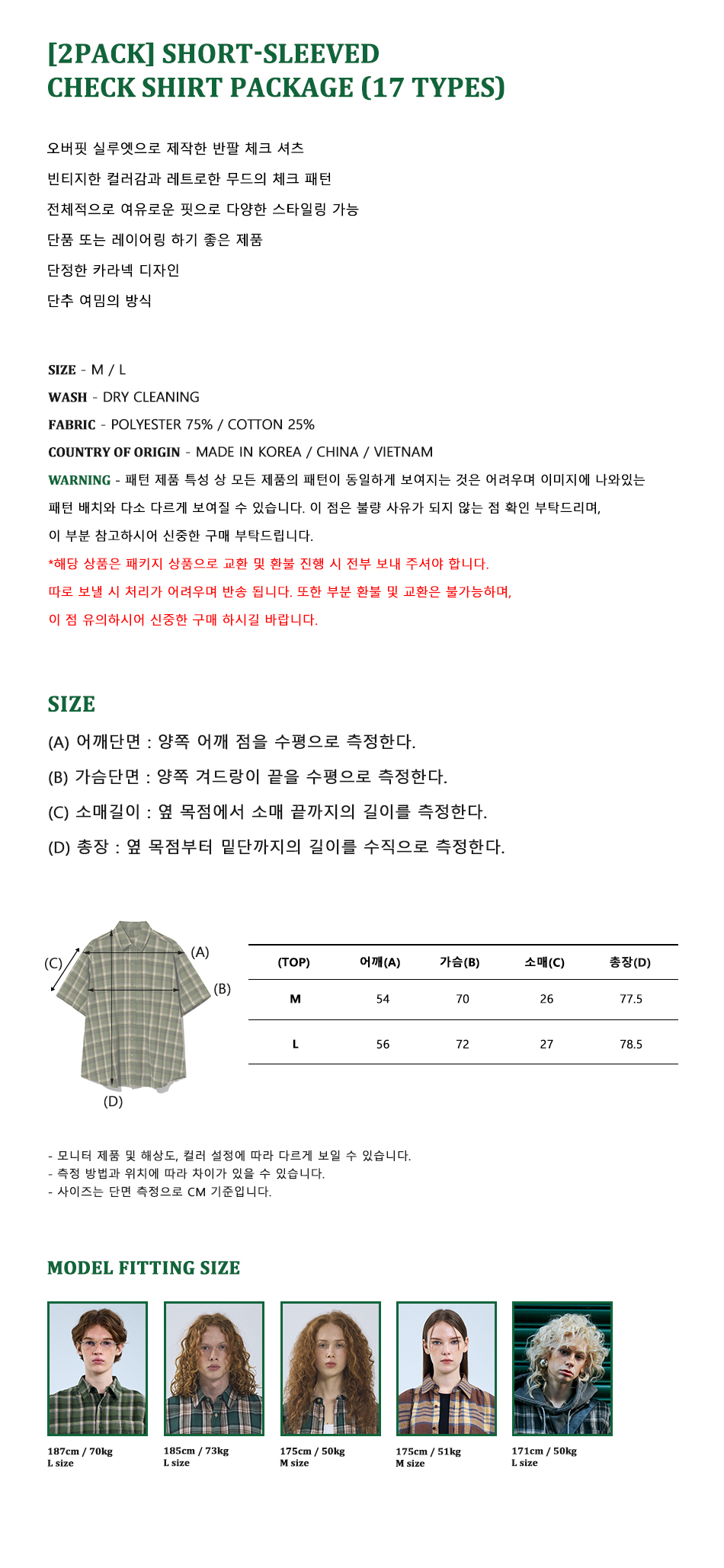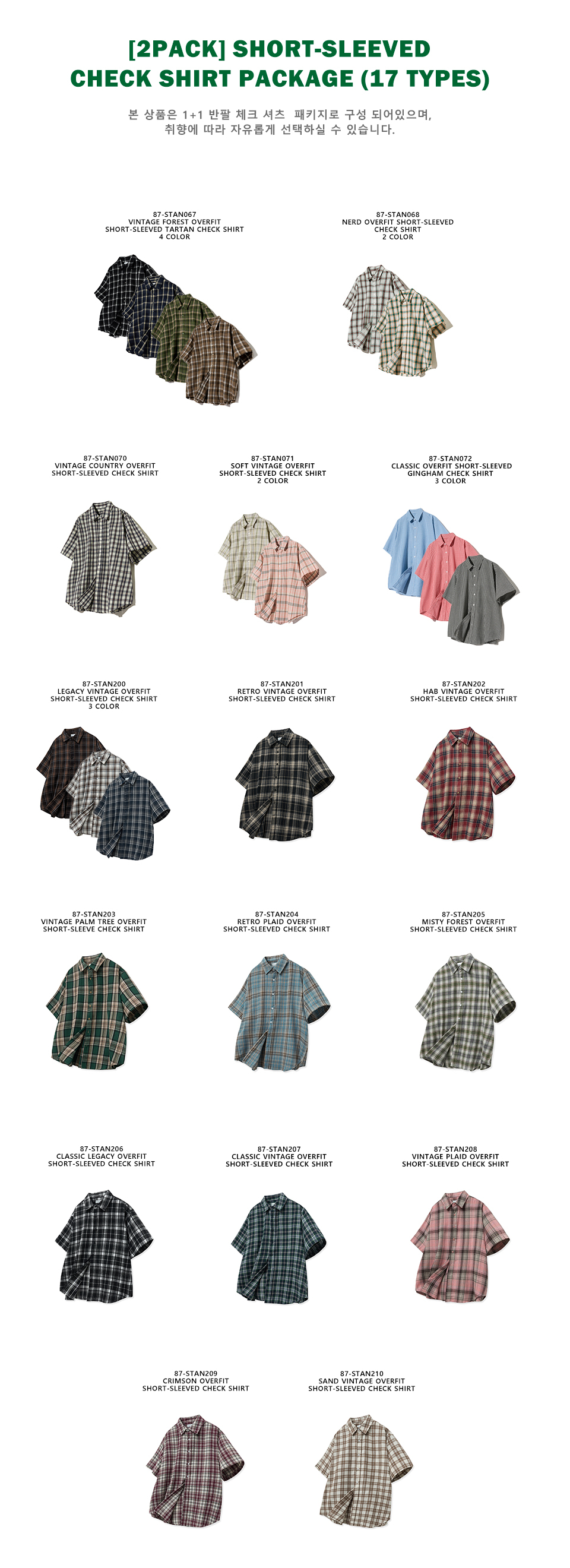 [2PACK] 반팔 체크 셔츠 패키지 (17종)