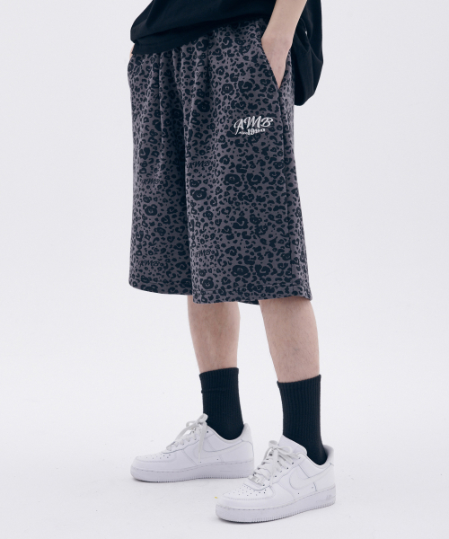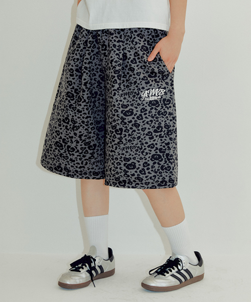 Heart Bear Leopard Pants 버뮤다 원턱 스웨트 숏츠 반바지 ASP801 (다크그레이)