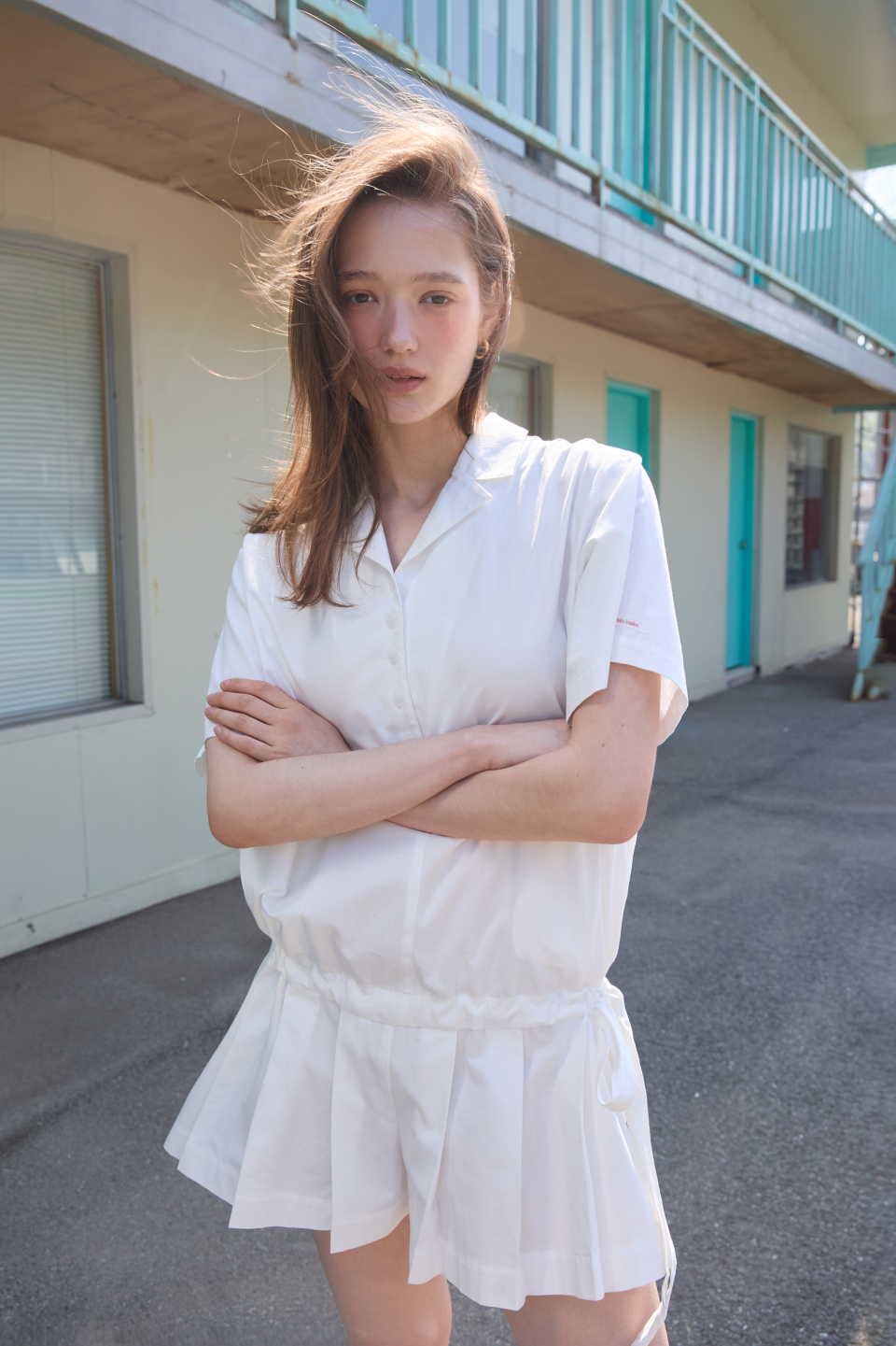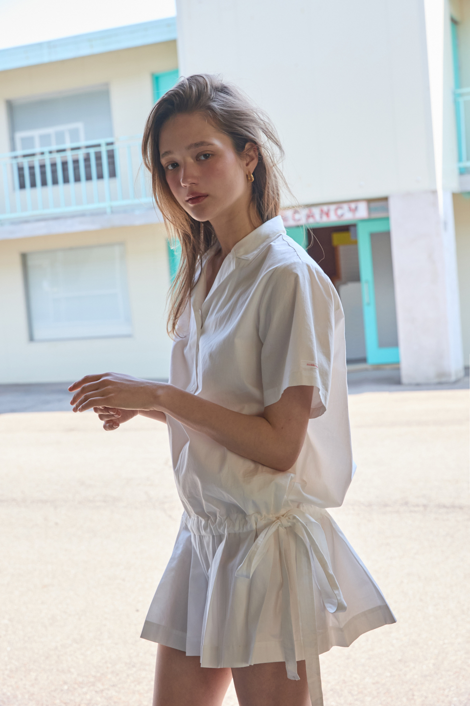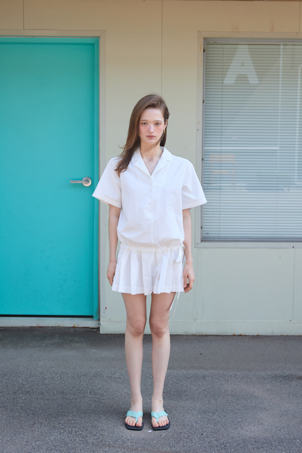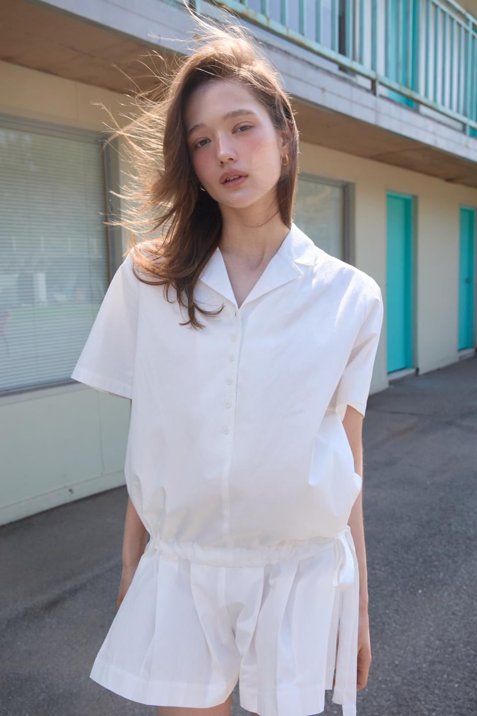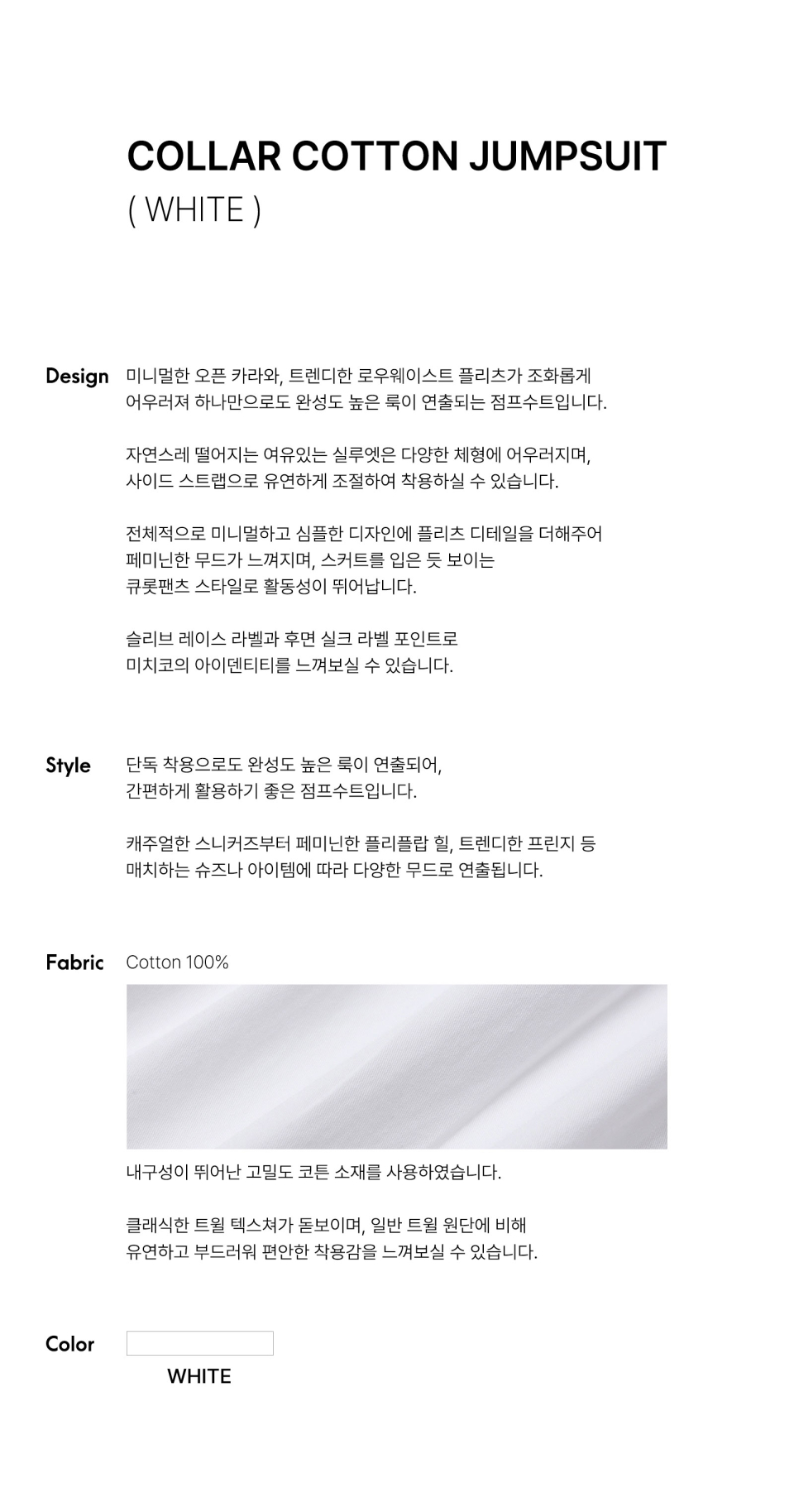 카라 코튼 점프수트 화이트