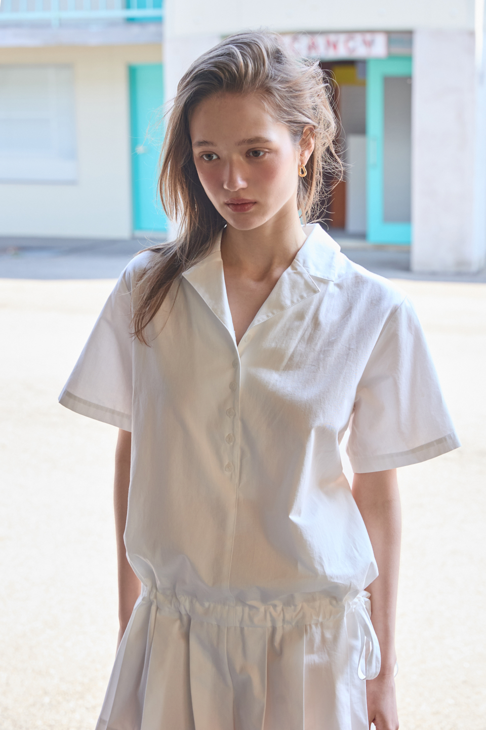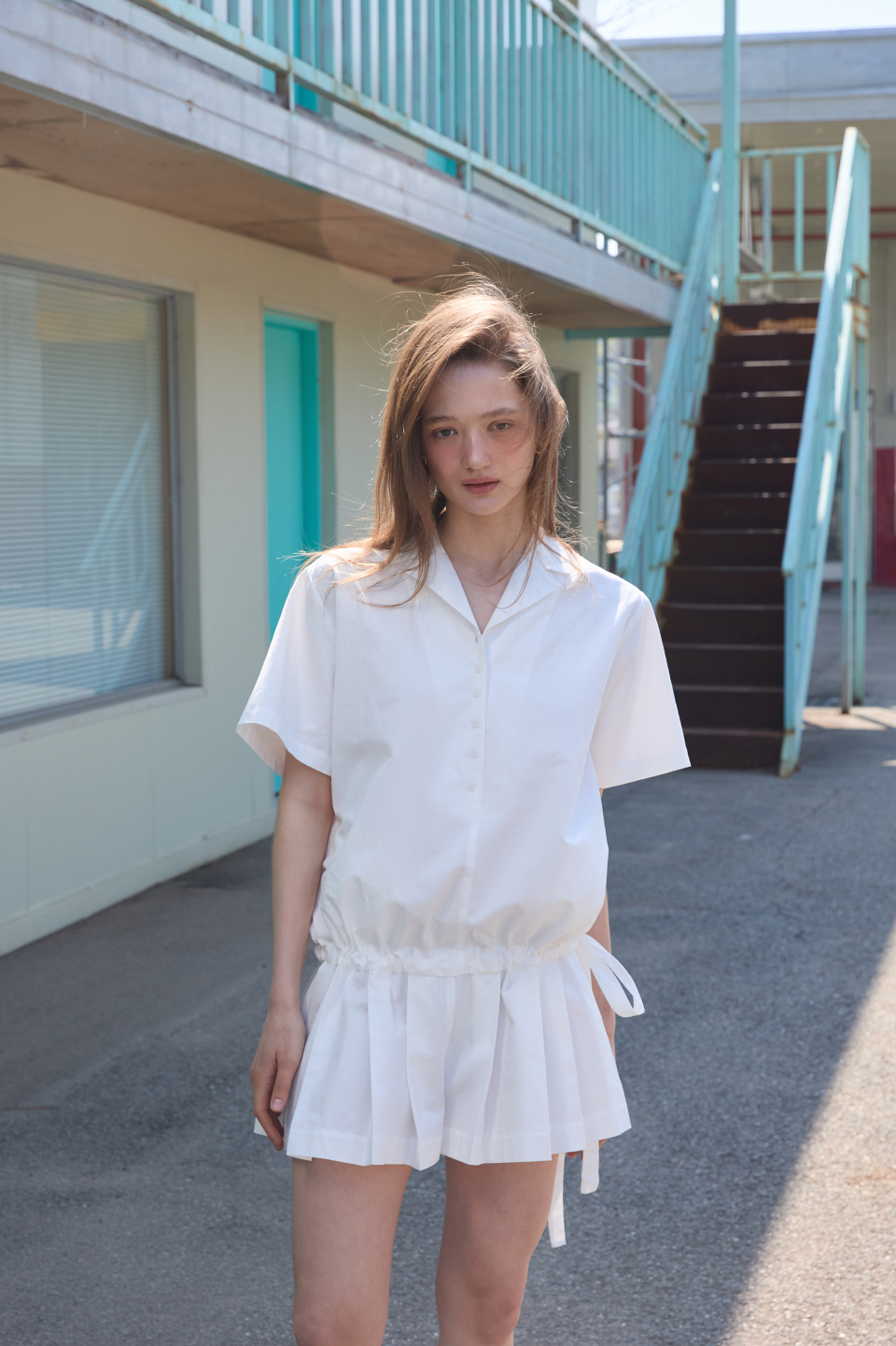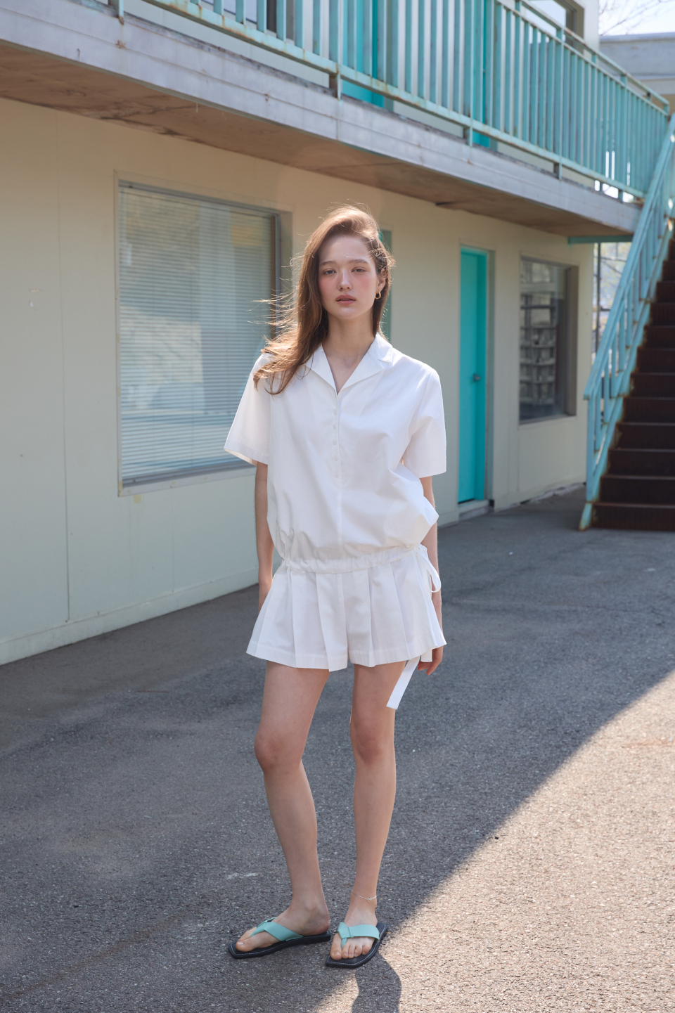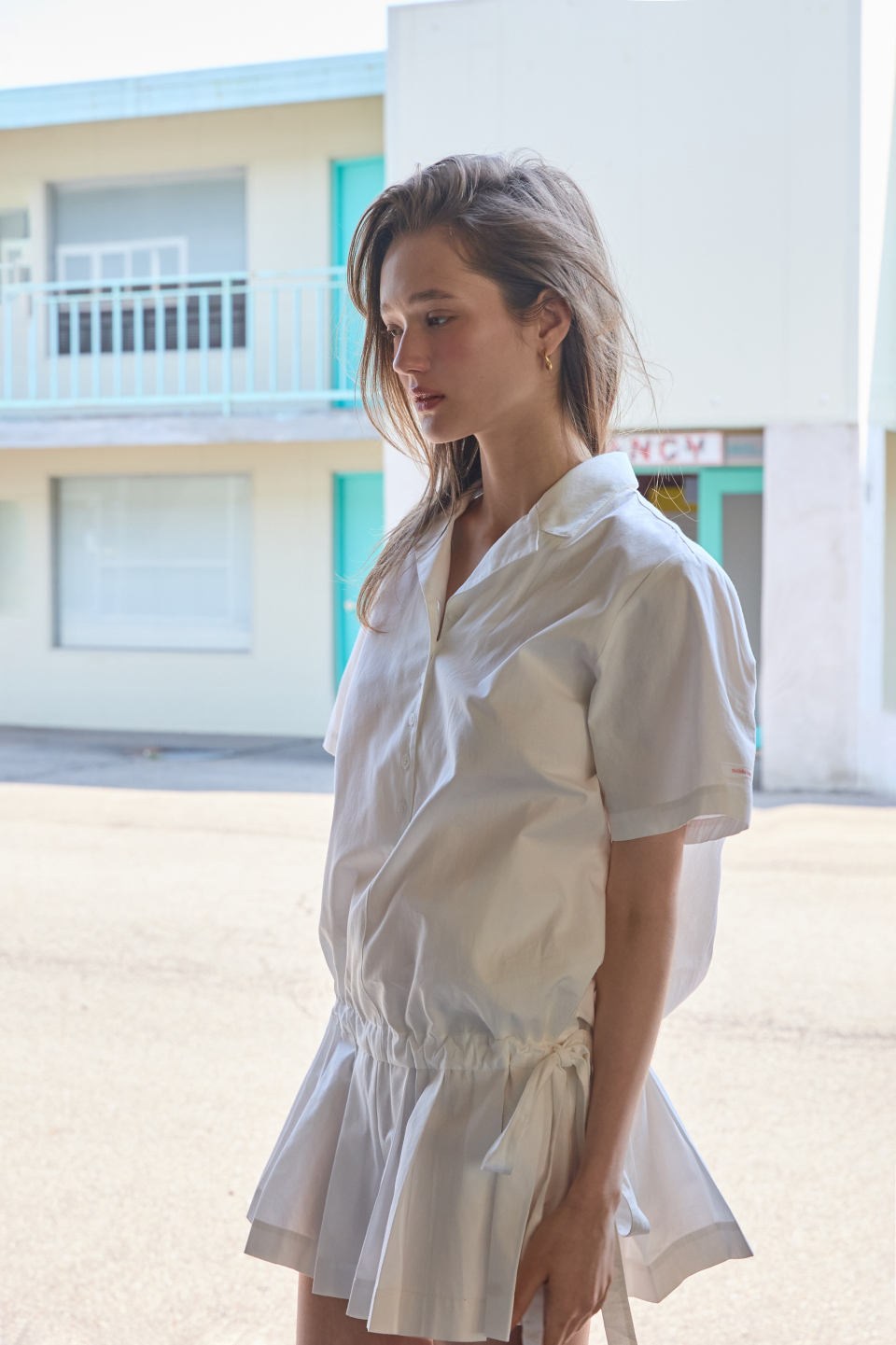카라 코튼 점프수트 화이트