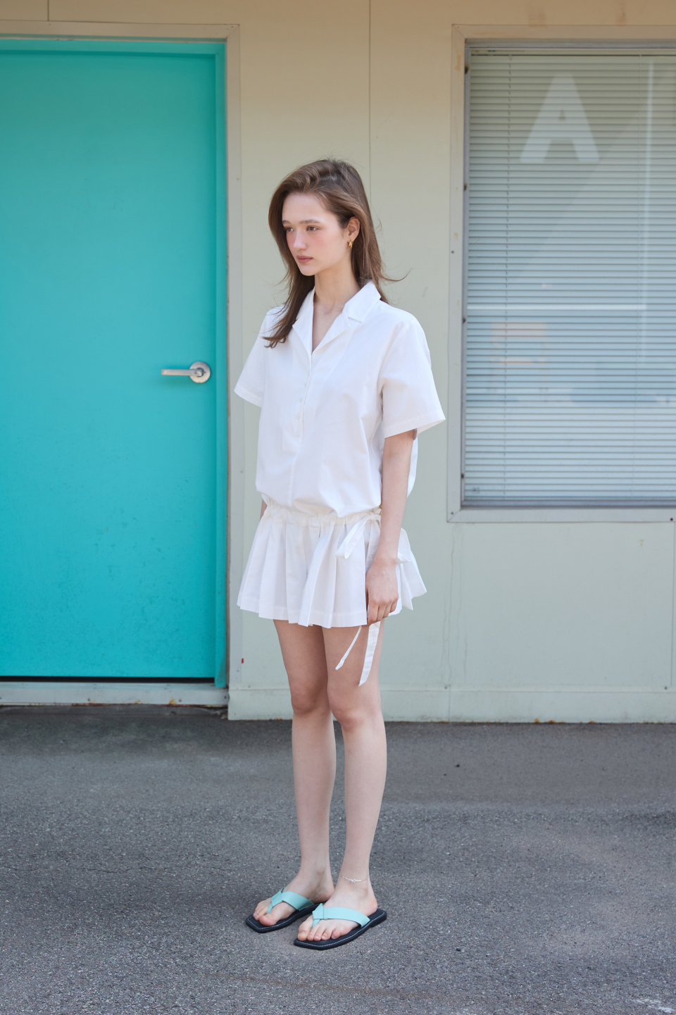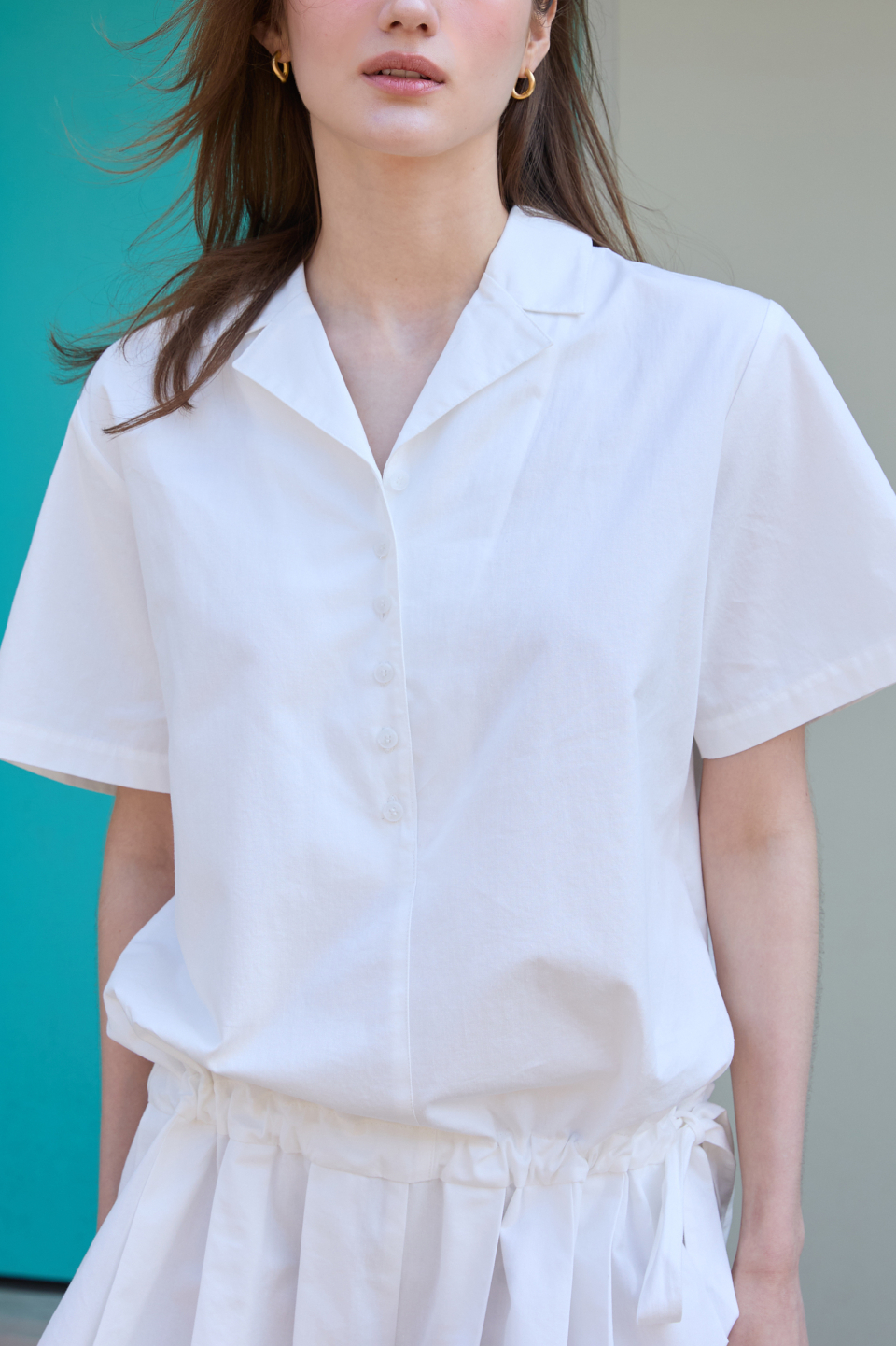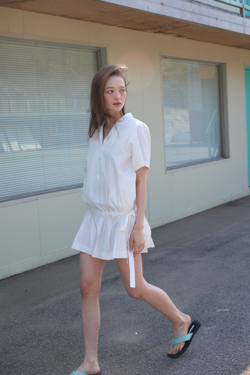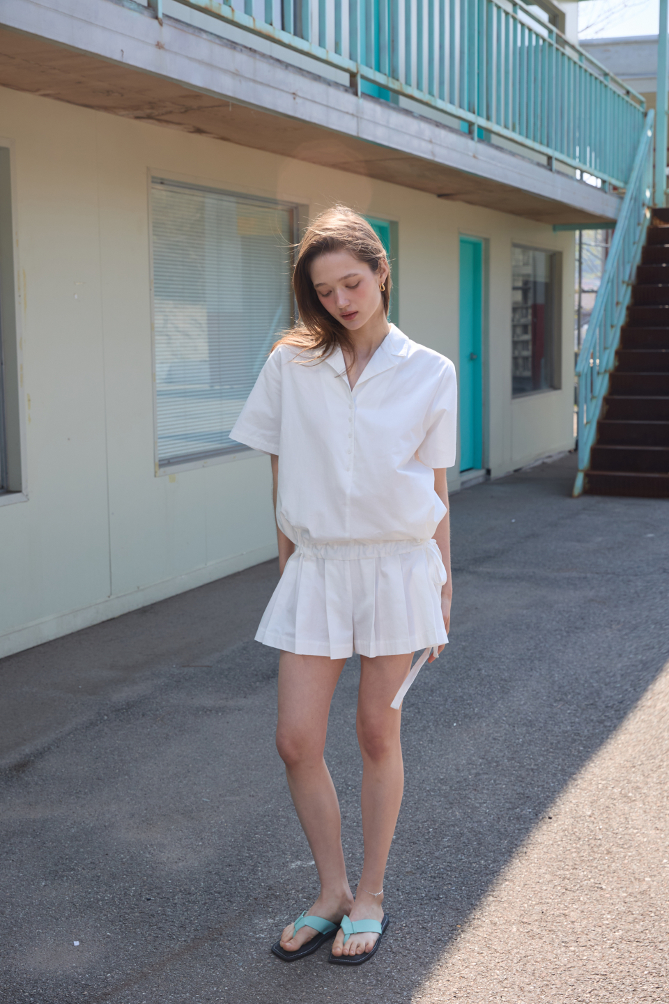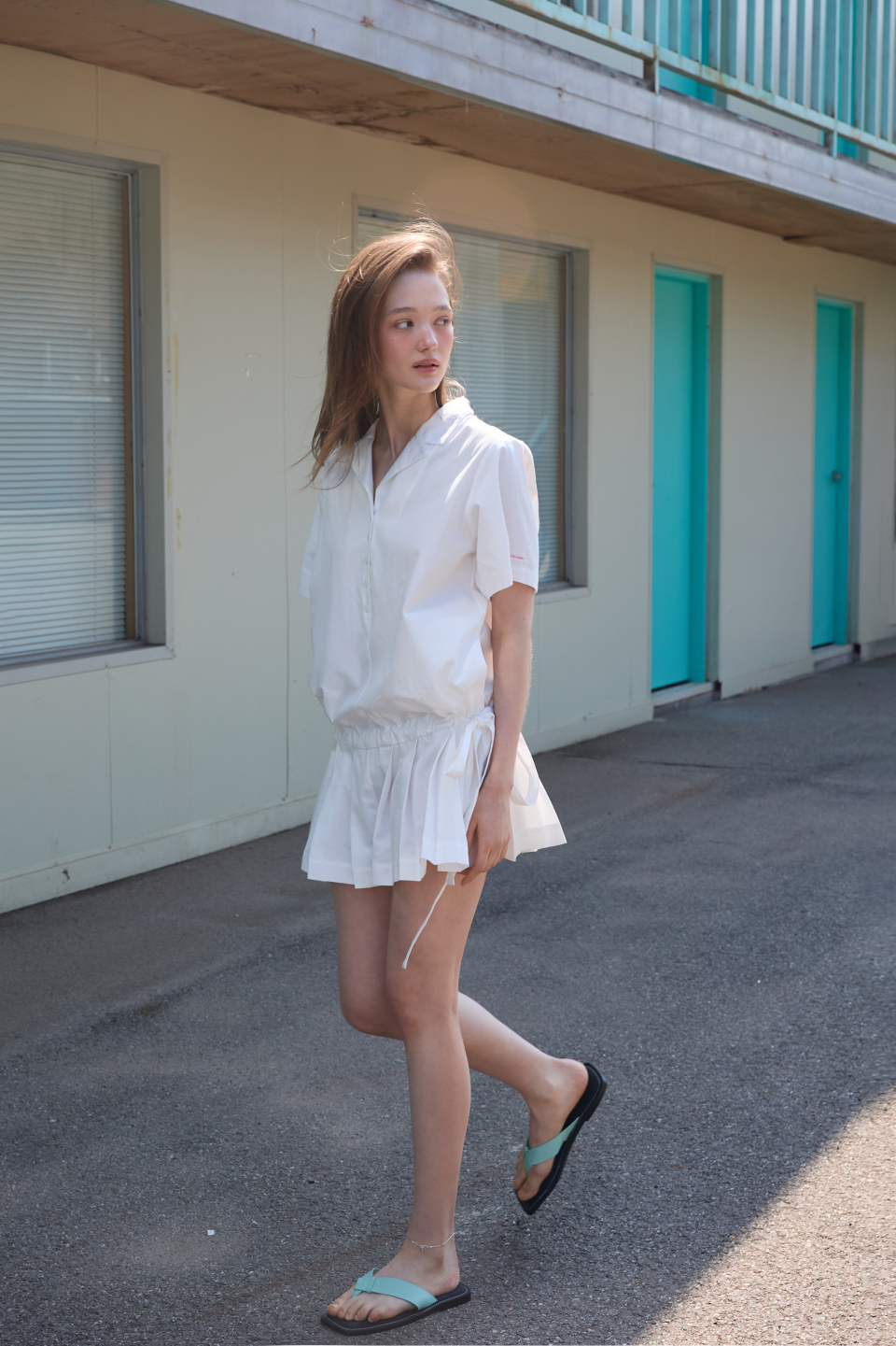 카라 코튼 점프수트 화이트
