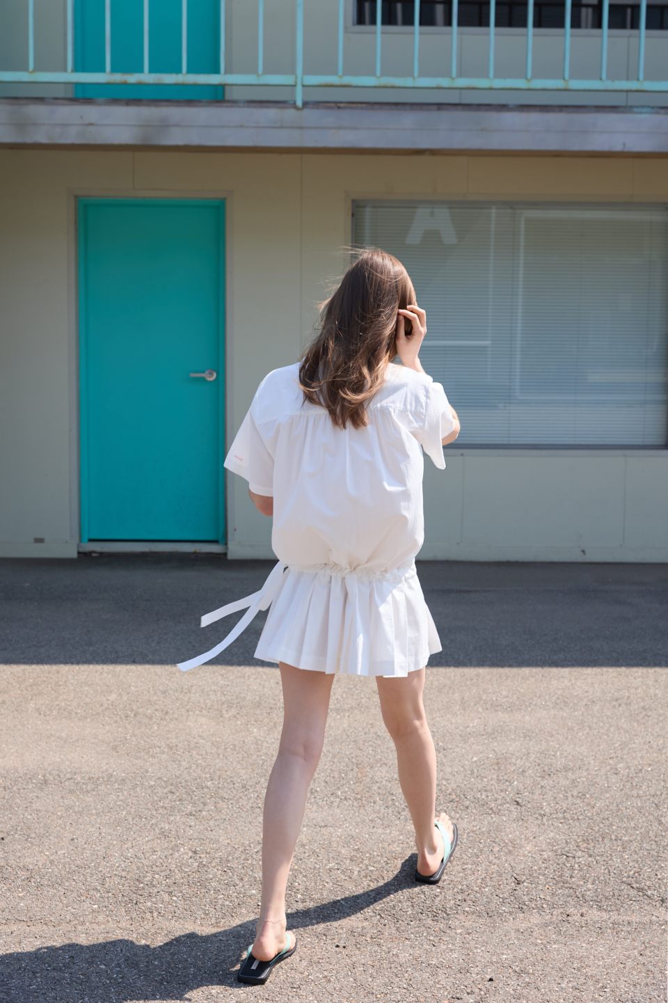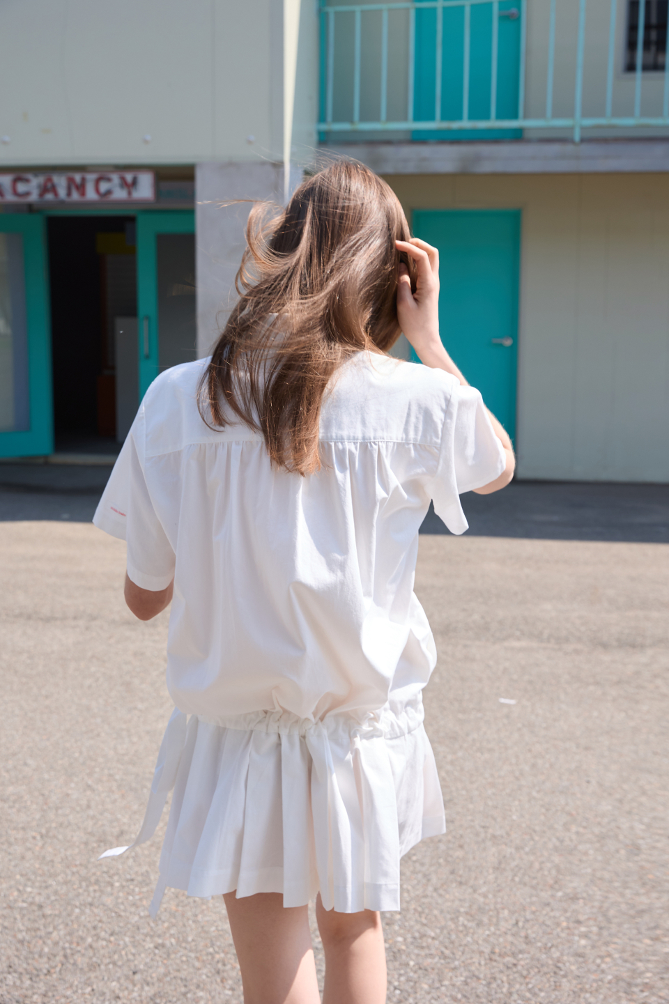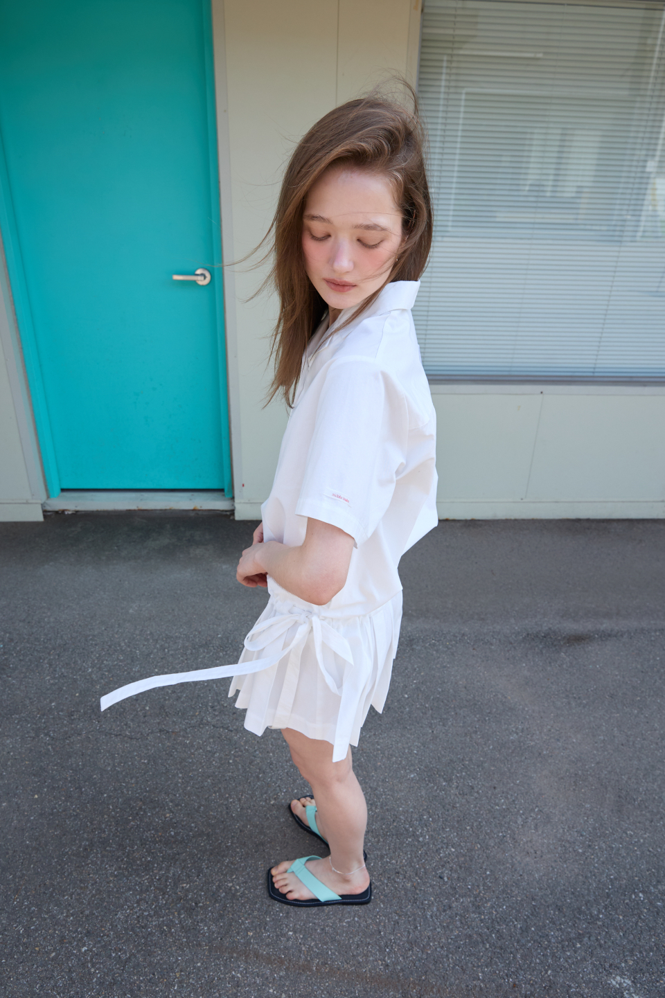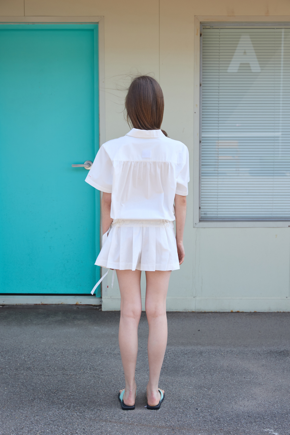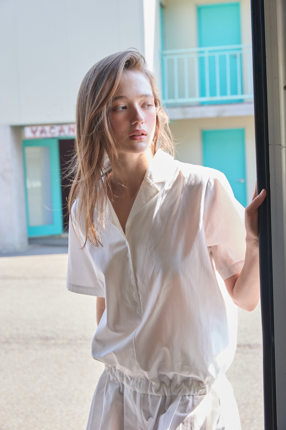카라 코튼 점프수트 화이트