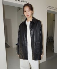 (woman) 유틸 싱글 레더 하프코트_Black