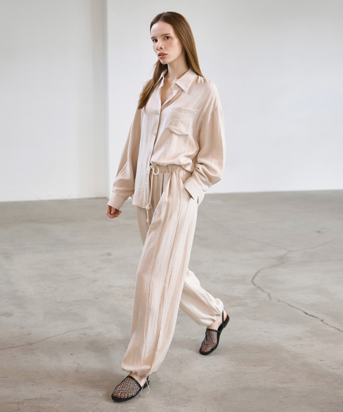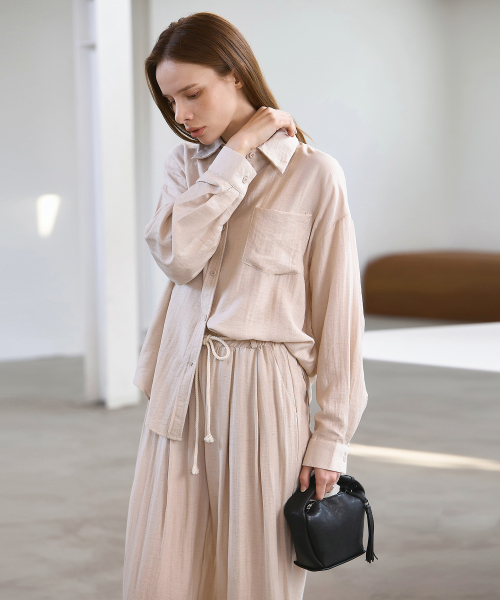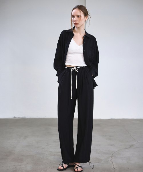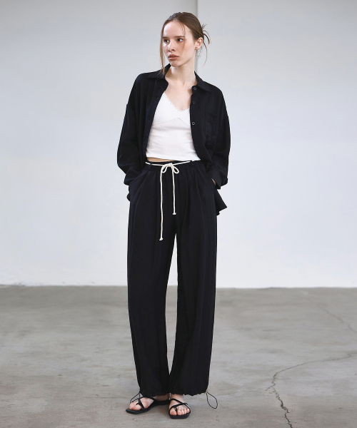 미니미 포켓 와이드 벨티드 코튼 팬츠