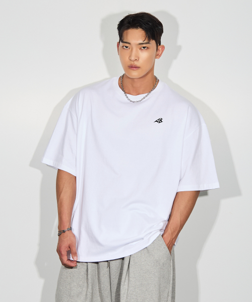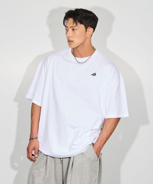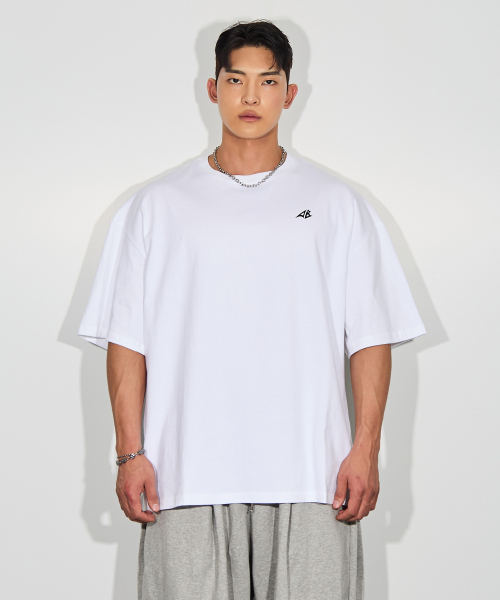 스타일리쉬 원형 로고 오버 핏 반팔 화이트