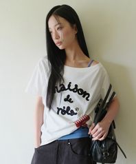 MAISON DE ROLA EMBROIDERY OFF SHOULDER T-SHIRT OFF WHITE