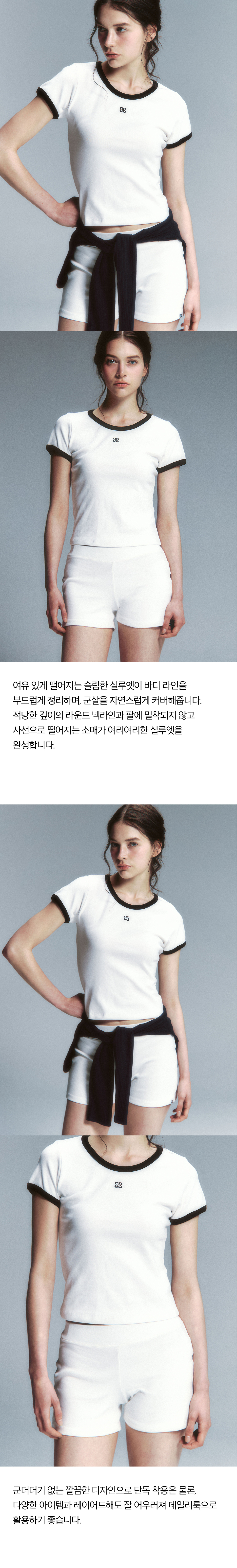 에센셜 티셔츠 화이트 배색