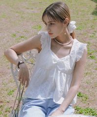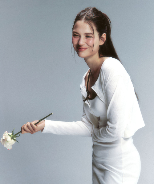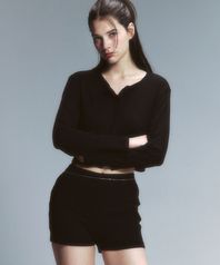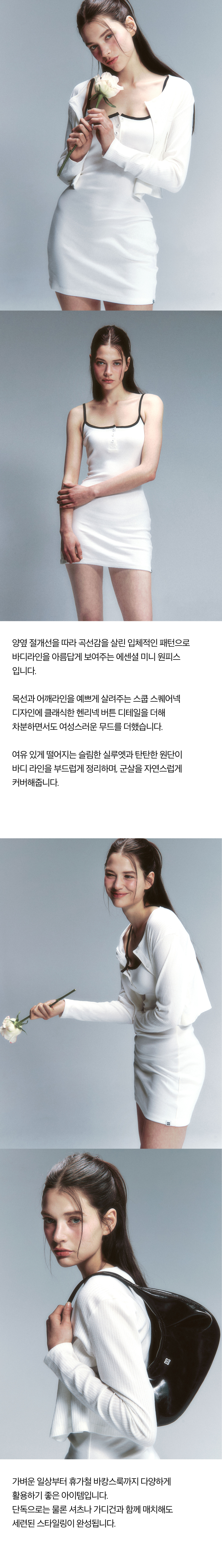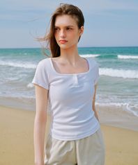 우먼즈 슬림 스퀘어 넥 헨리 티셔츠 [화이트]