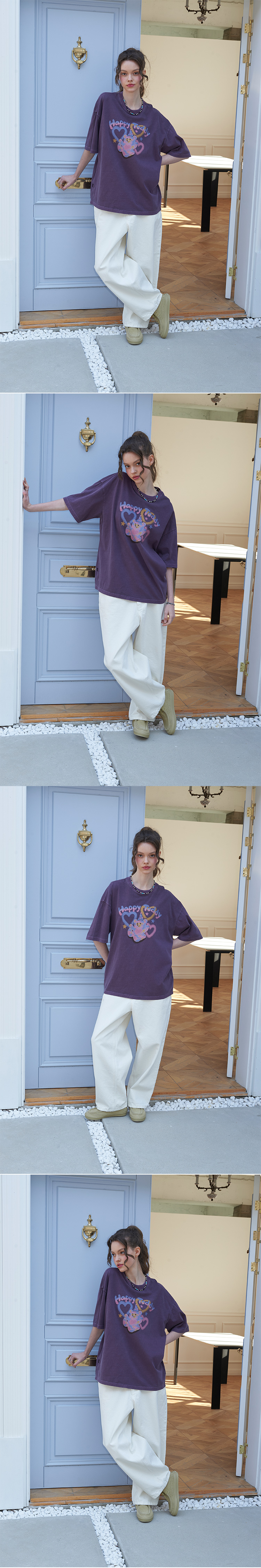 블러쉬테디 피그먼트 반팔티 애쉬퍼플