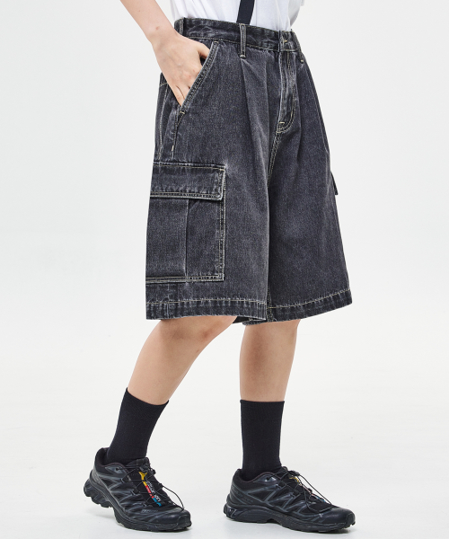 [2PACK] 둠바 와이드 카고 데님 하프팬츠 GJBHP35 (2COLOR)
