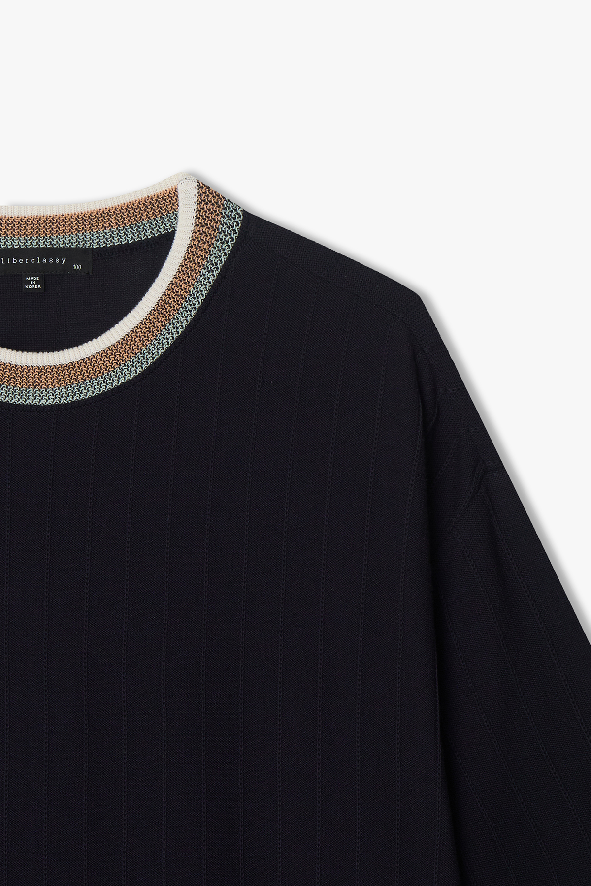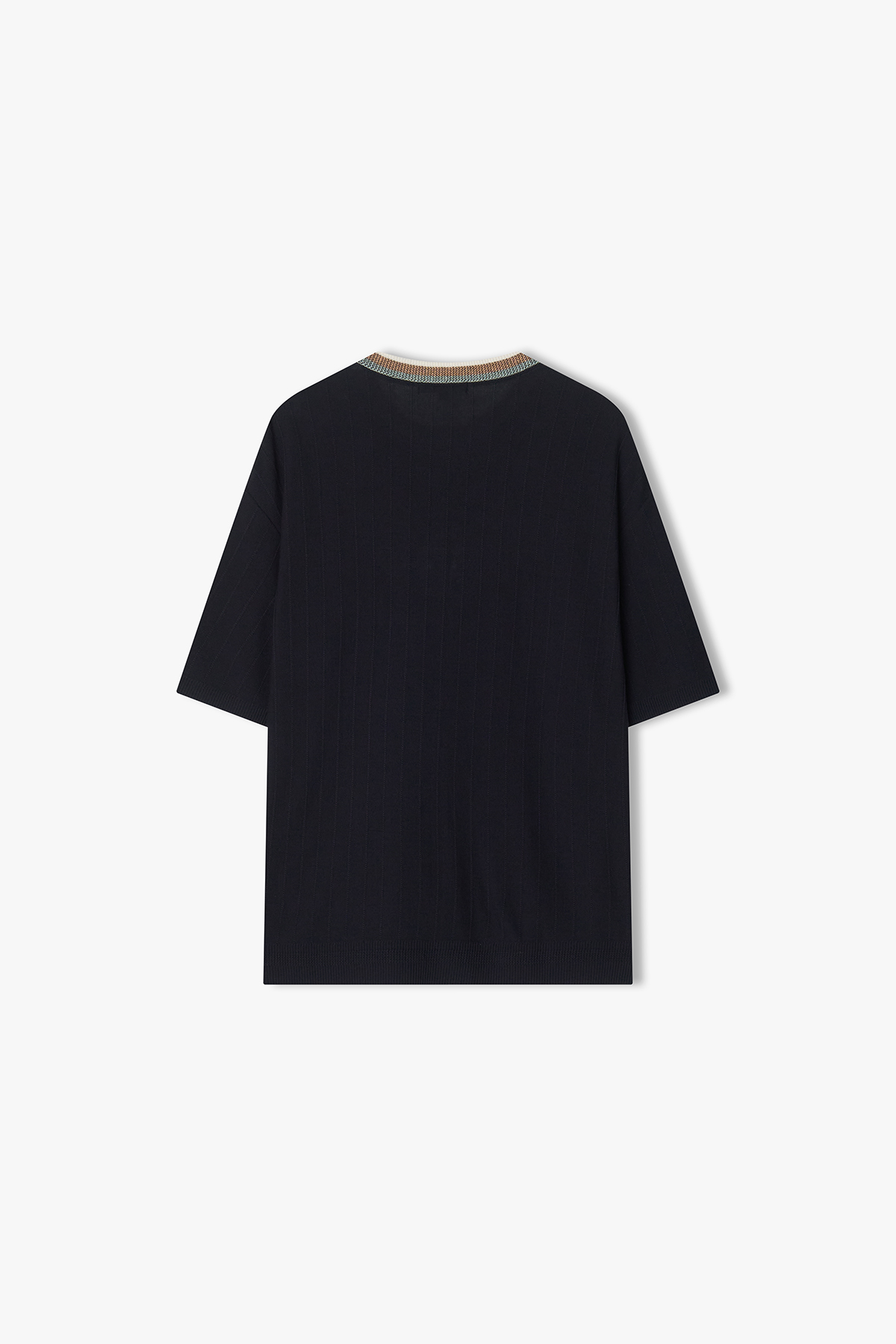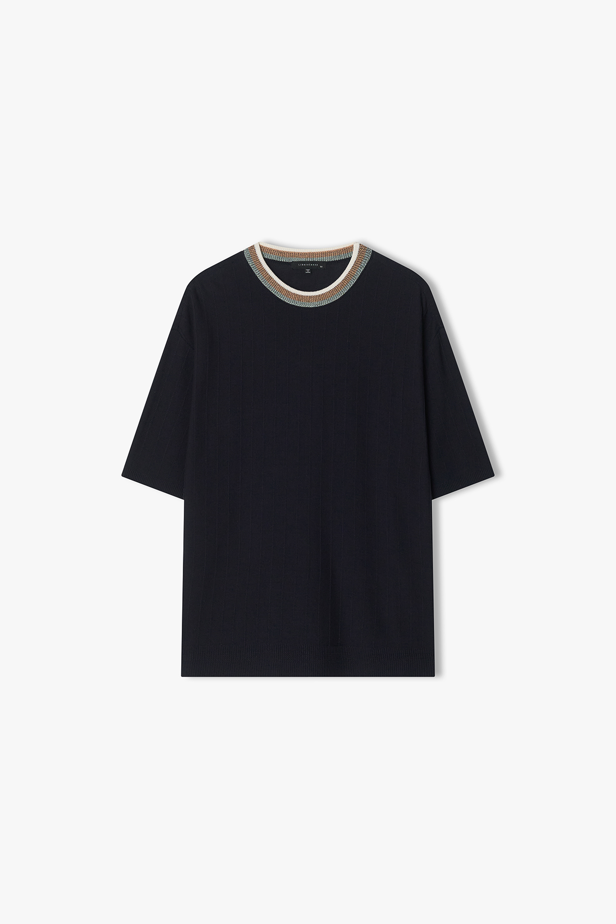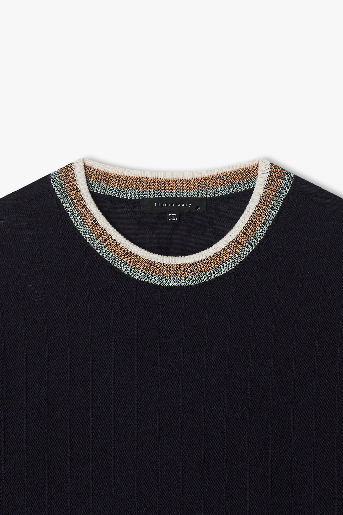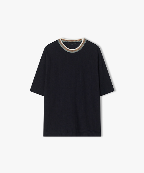 [25SS] LLM51522 네이비 라운드넥 라인 배색 하프 니트 탑