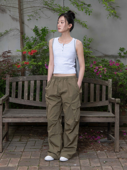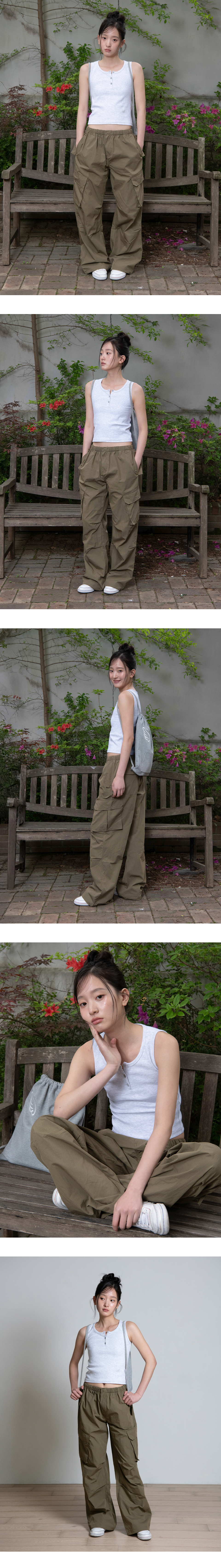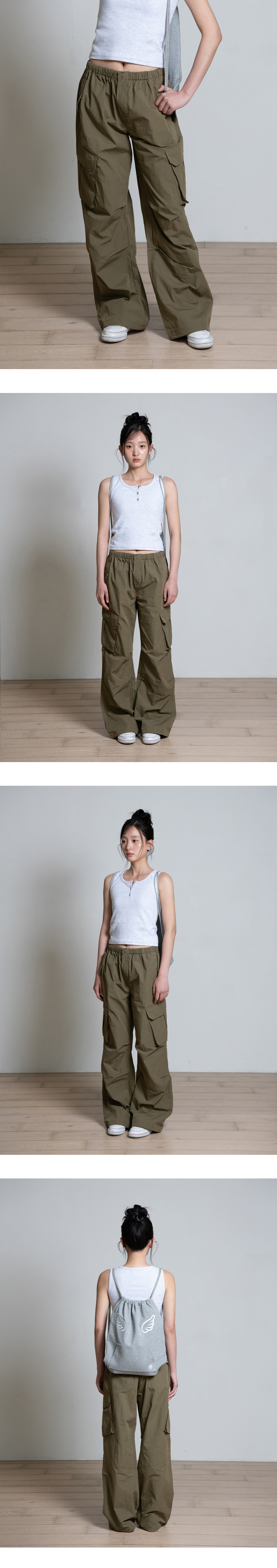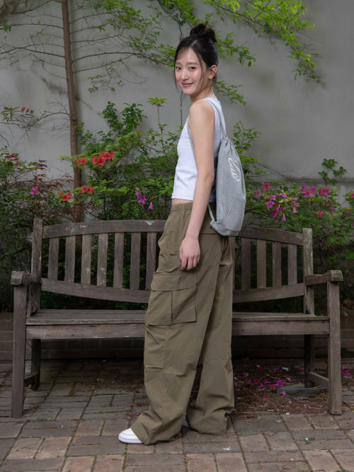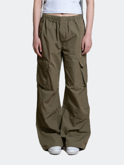 CUTOFF CARGO PARACHUTE PANTS, KHAKI