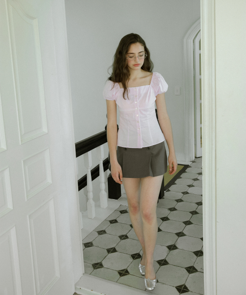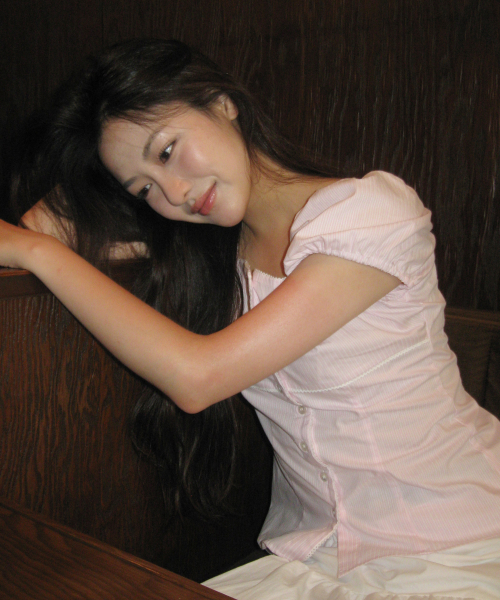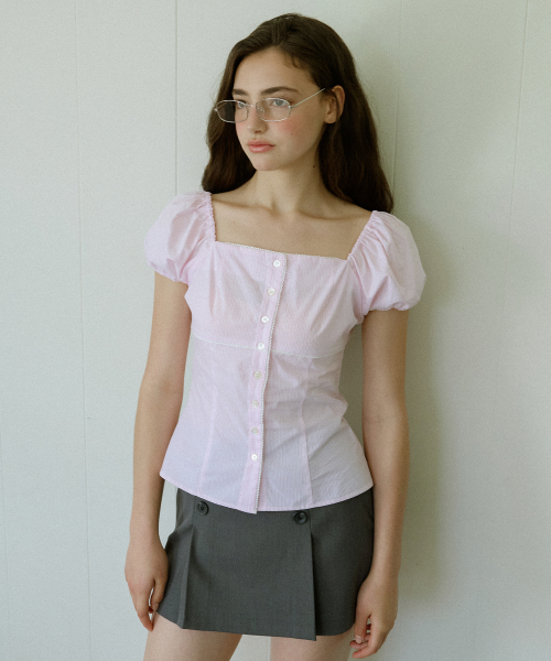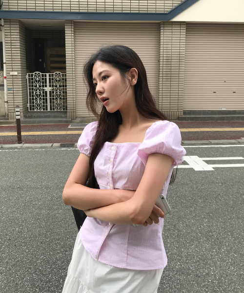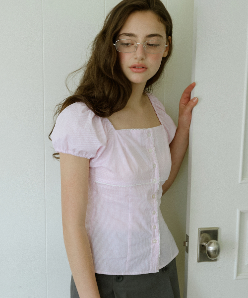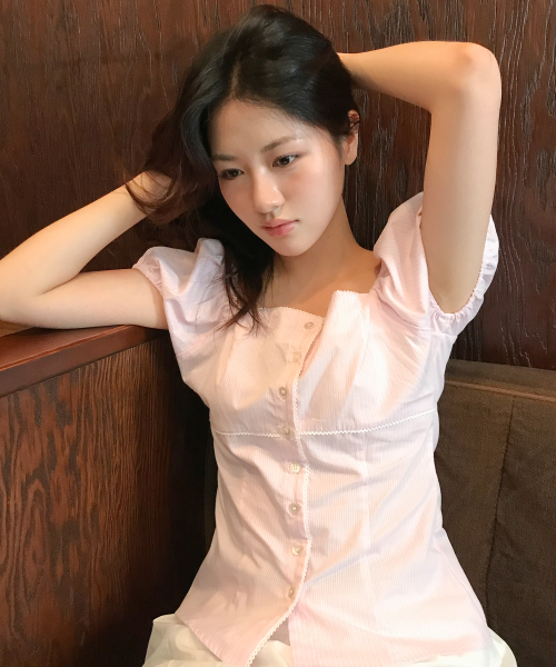 로지 레이스 퍼프 블라우스 ( 핑크 )