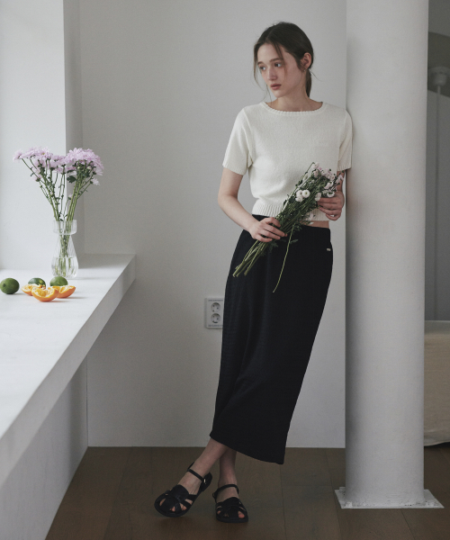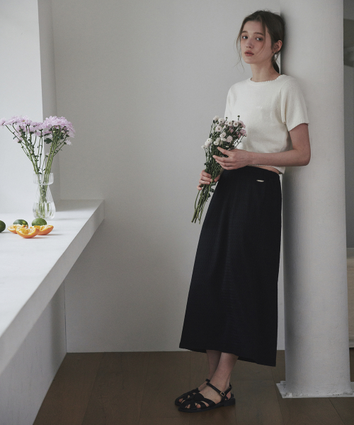 레이스 밴딩 롱 스커트 블랙