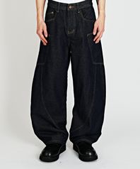 커브드 포켓 데님 와이드 팬츠(인디고 블루)