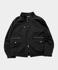 하이넥 스탠다드 아일렛 비조 포인트 코튼 블루종 투웨이 자켓 [블랙]