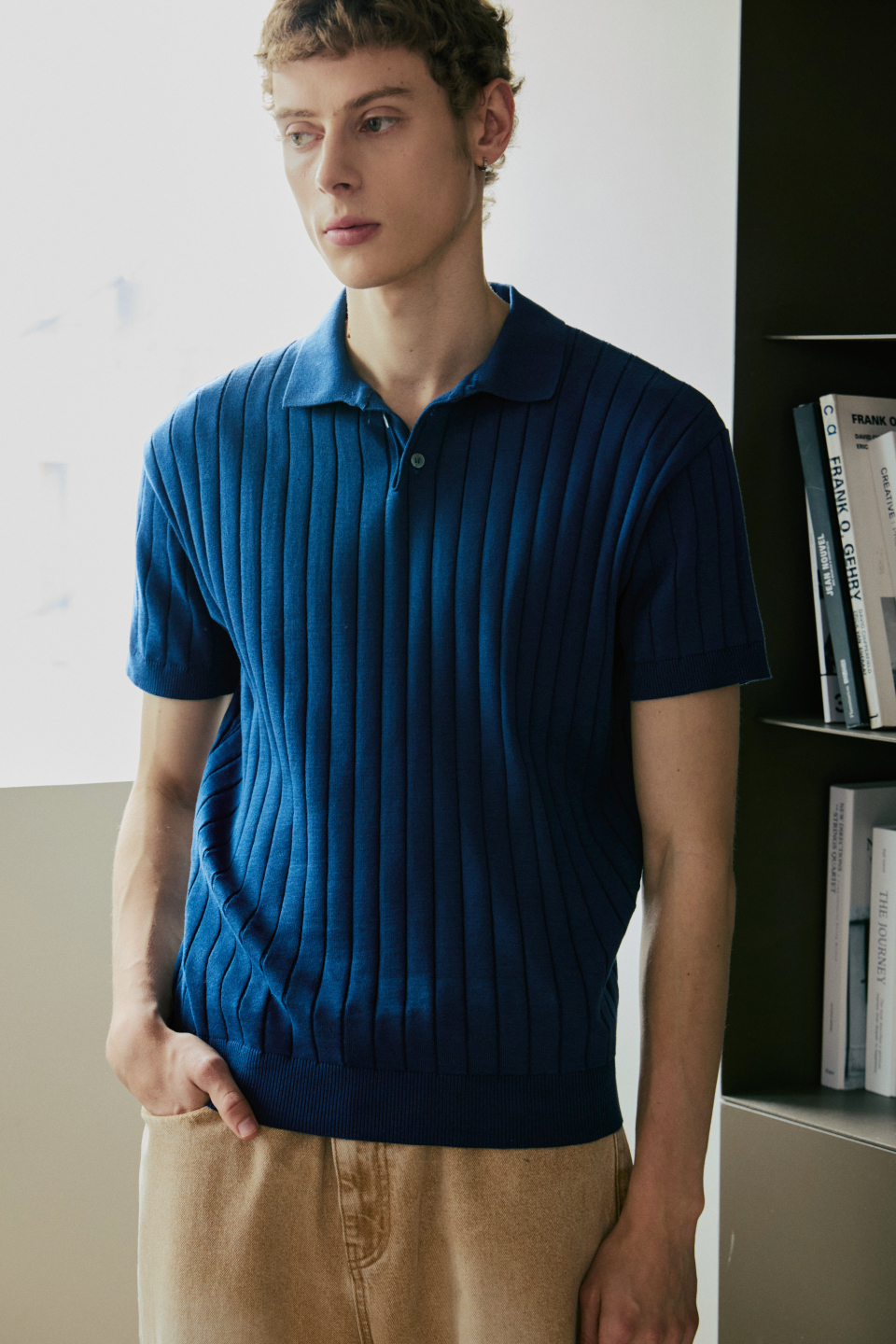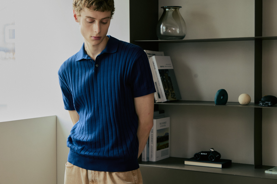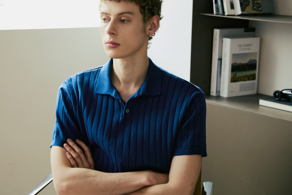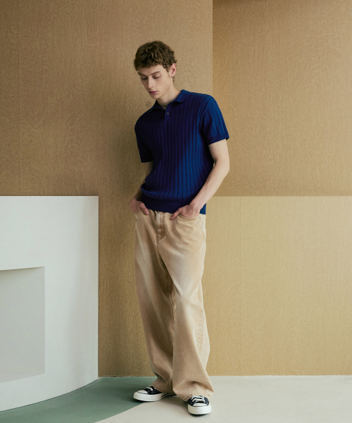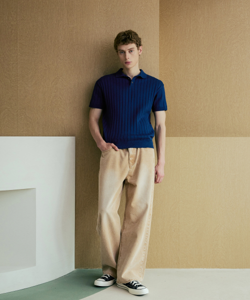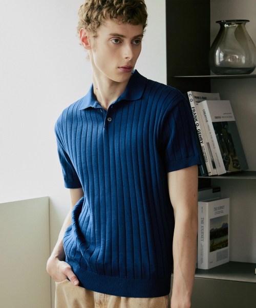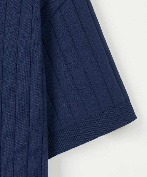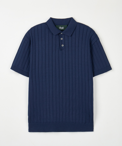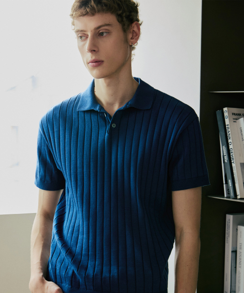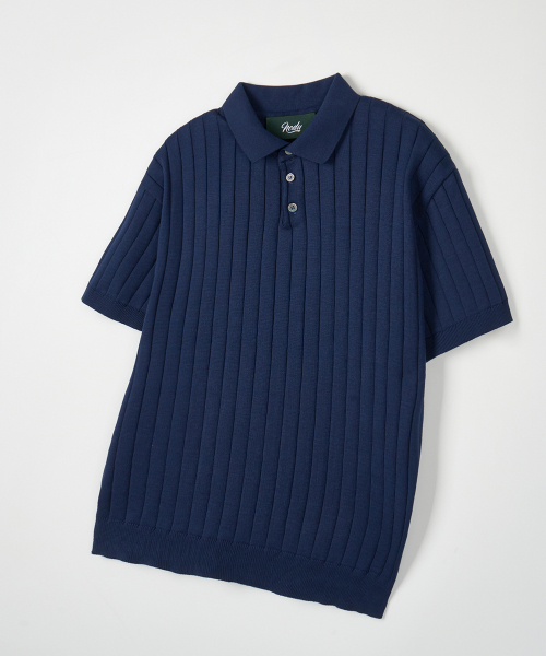 카라 골지 폴로 반팔 니트 [네이비]