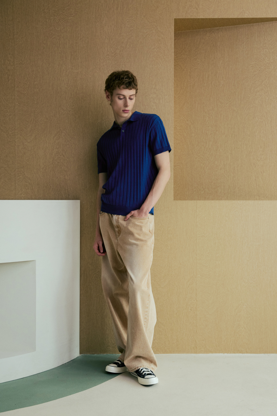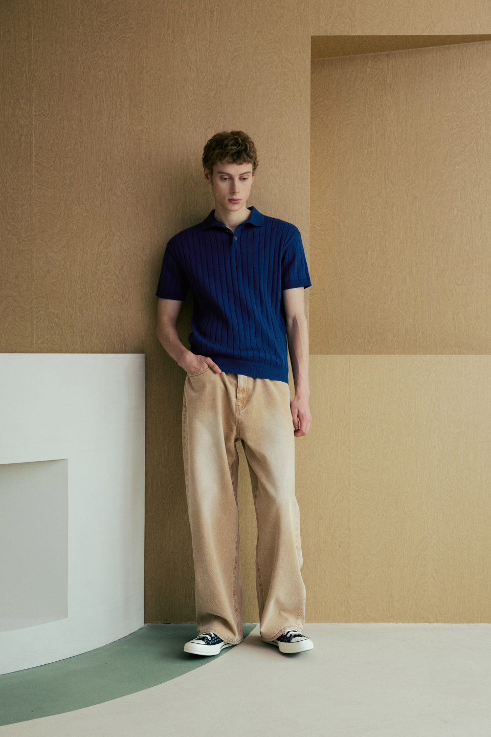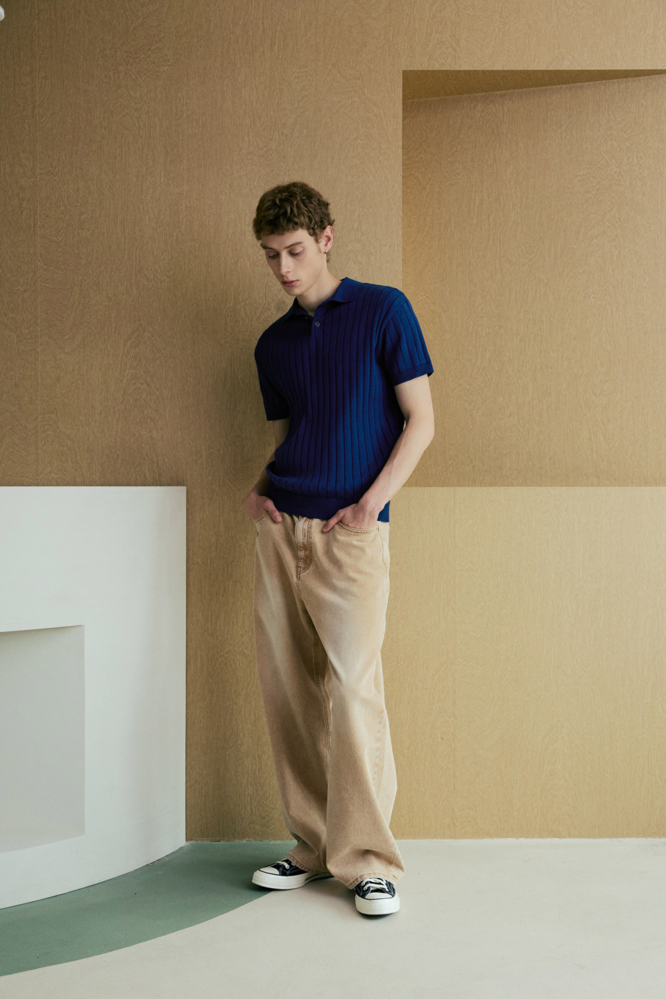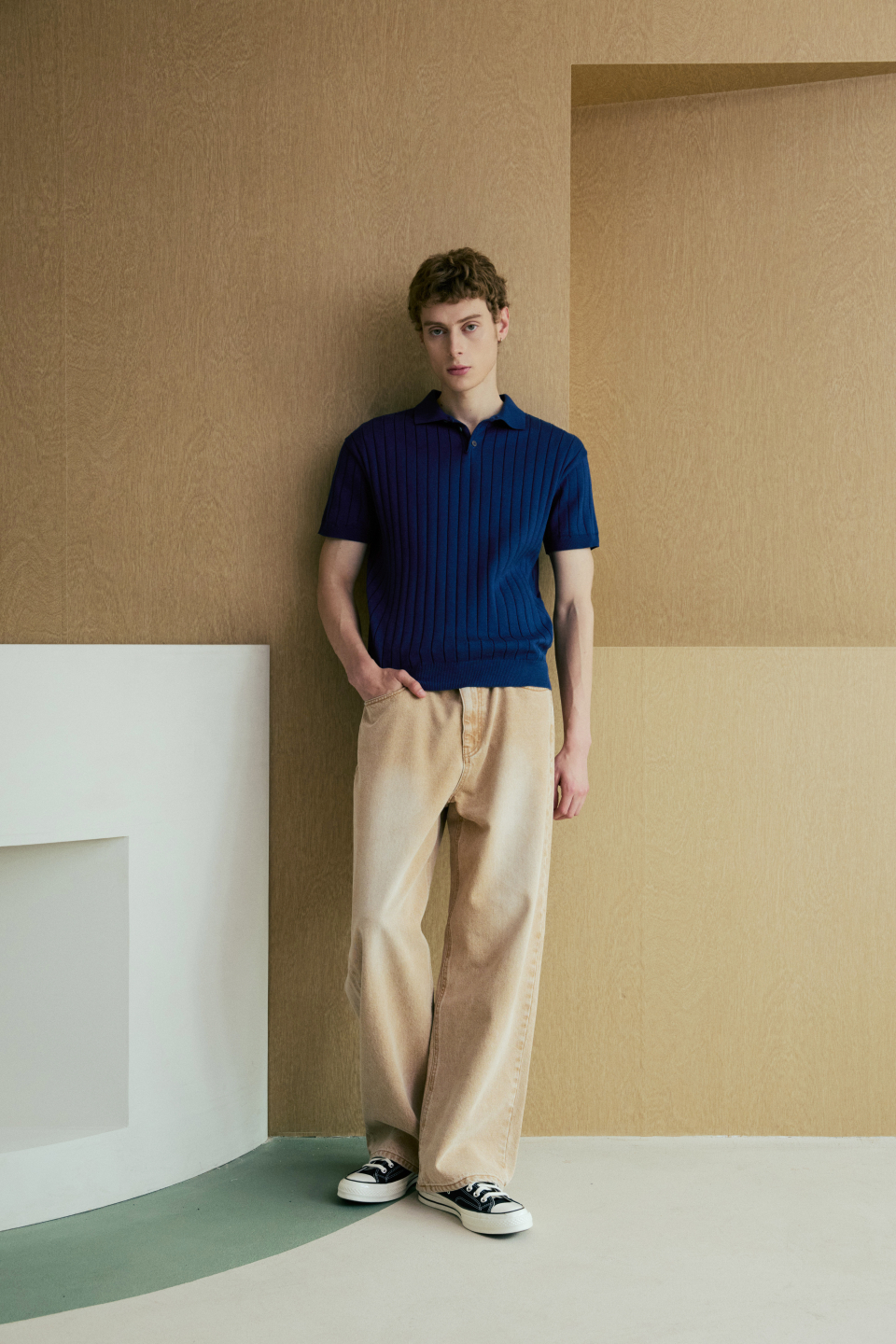 카라 골지 폴로 반팔 니트 [네이비]