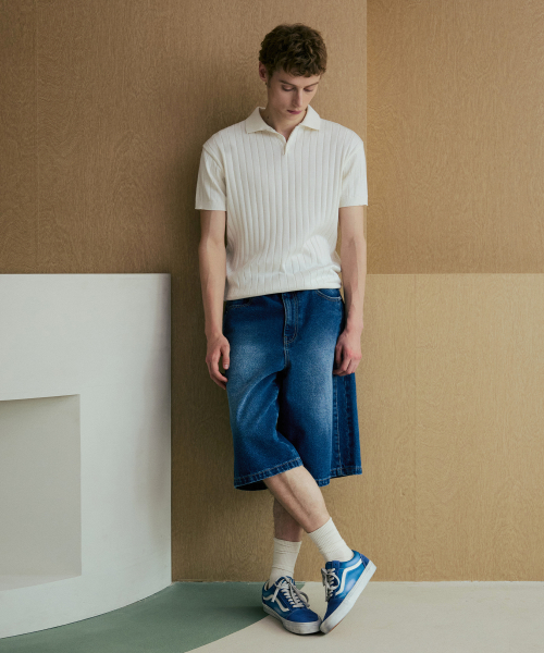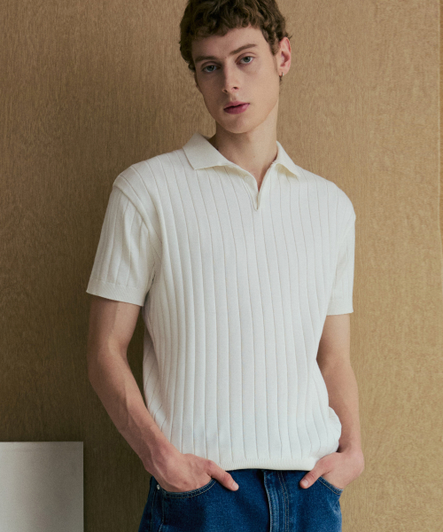 소프트 하프집업 머슬핏 카라 반팔 니트[브라운]