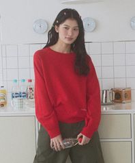 Cozy round knit pullover_Red