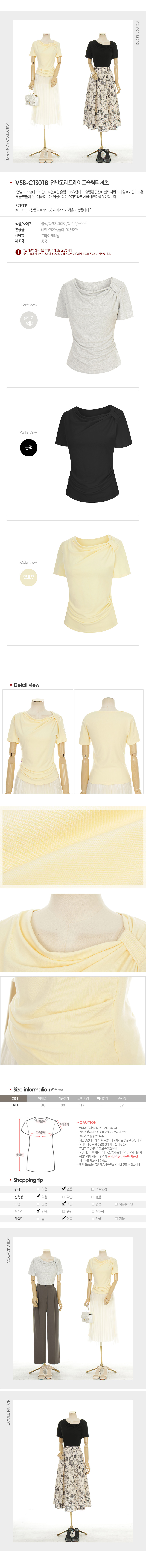 언발고리드레이프슬림티셔츠_V5B-CTS018