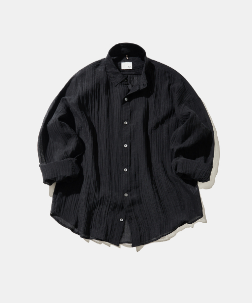 - 언밸런스한 앞뒤 기장과 라운드 밑단으로 커버업 셔츠에 최적화된 실루엣