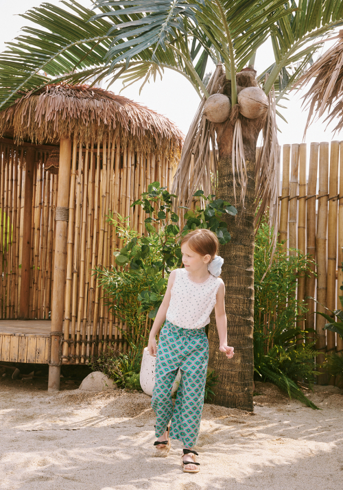 BZ32PT02GN 그린 프린트 와이드 7부 팬츠