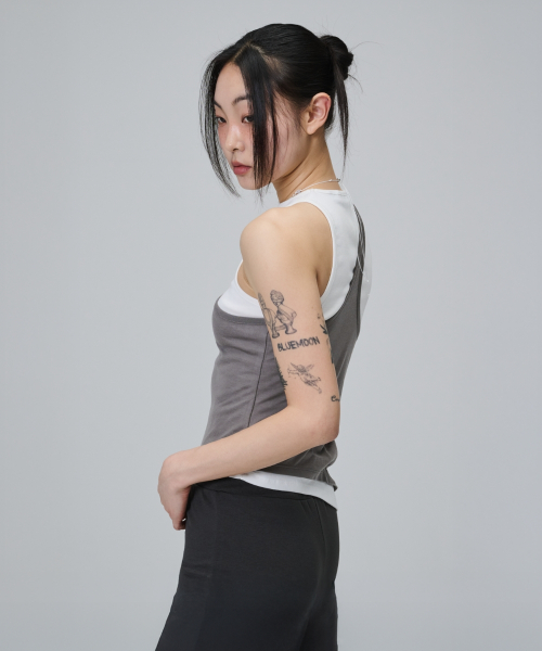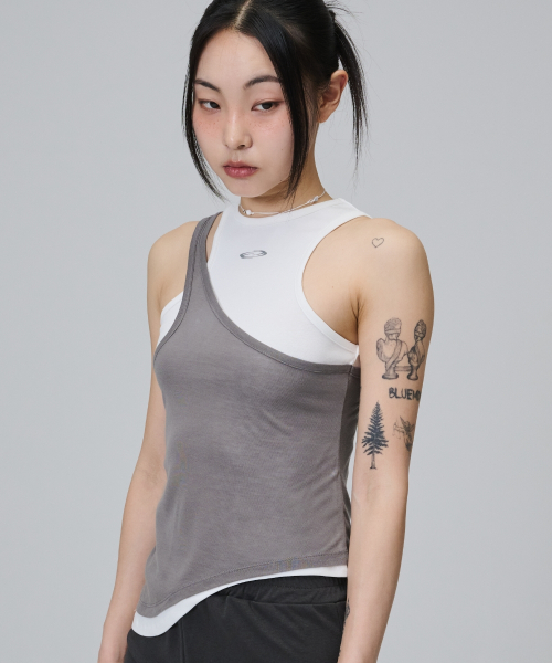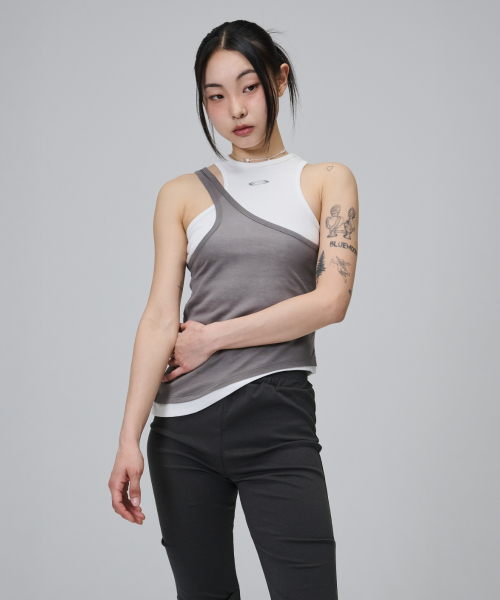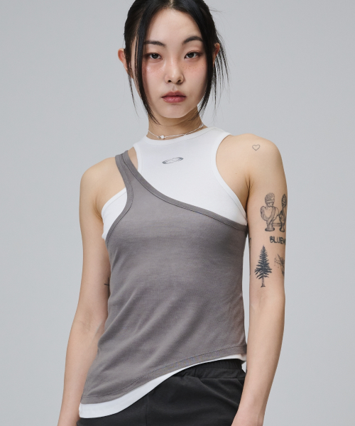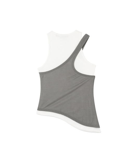 Asymmetry Layered Sleeveless T Shirt - White