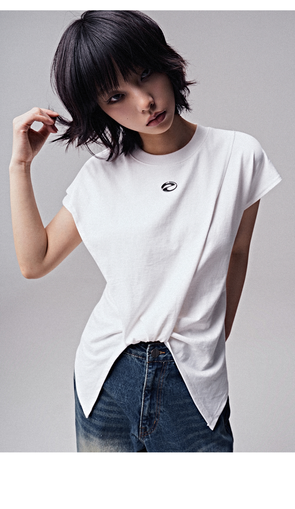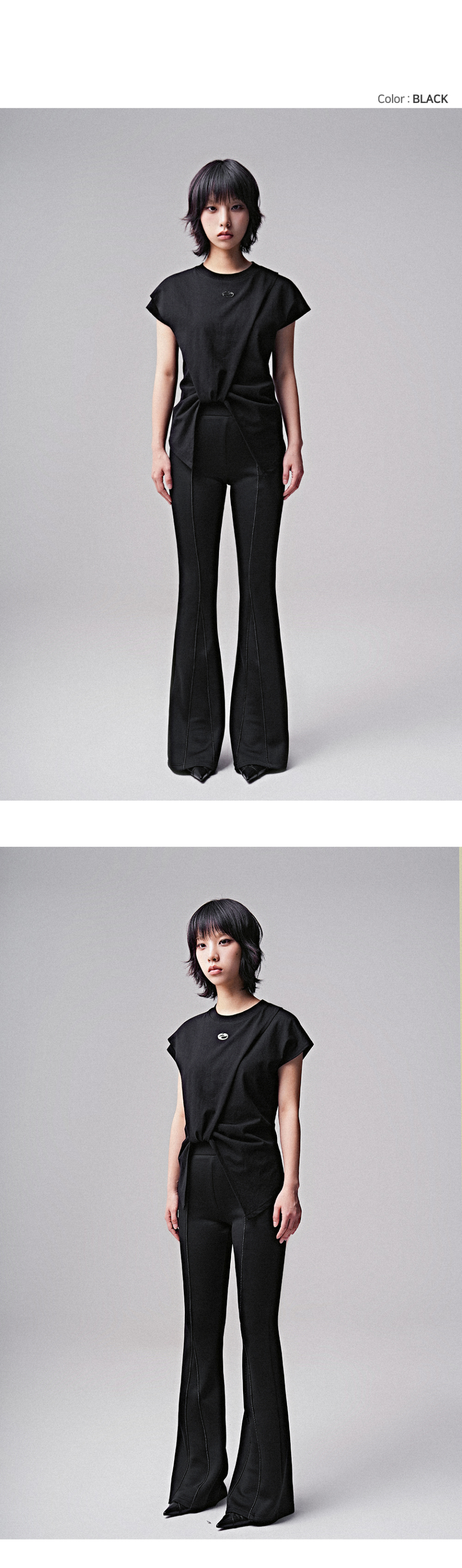 레이어드 오프숄더 라운드 시스루 나시 반팔 투피스 티셔츠_ 3COLOR