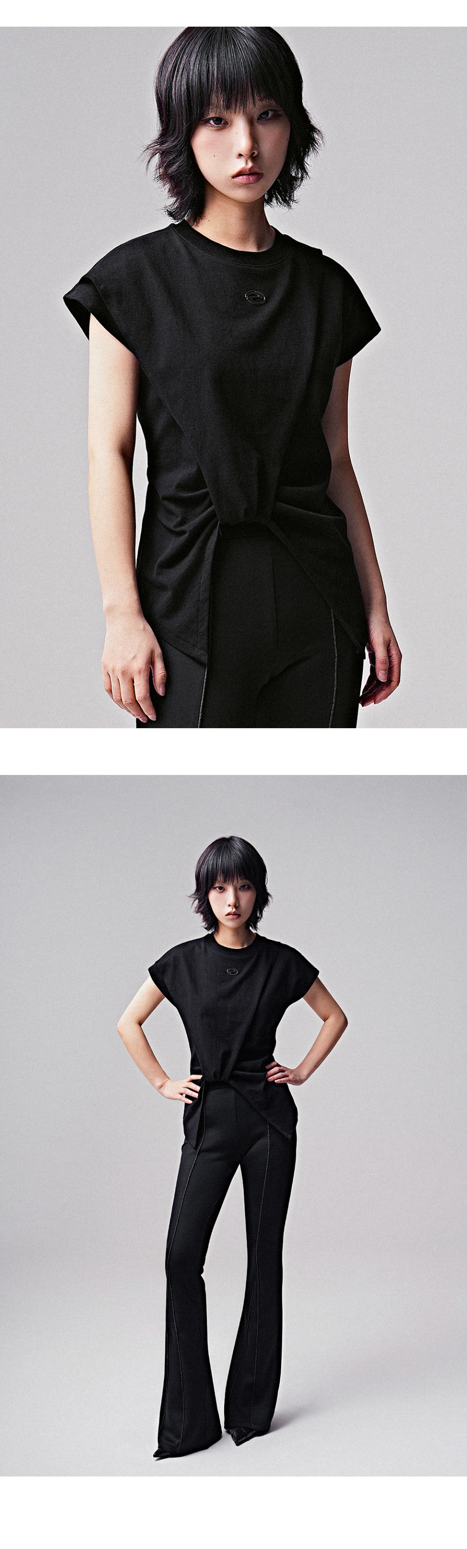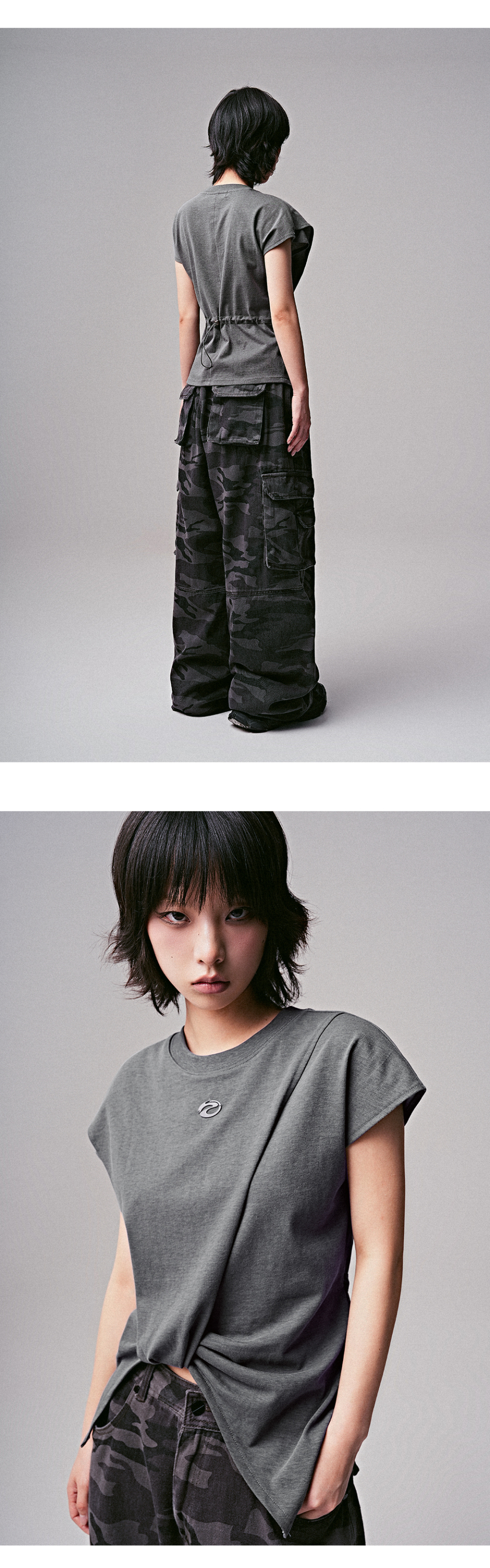 컷아웃 피어싱 롱슬리브 차콜
