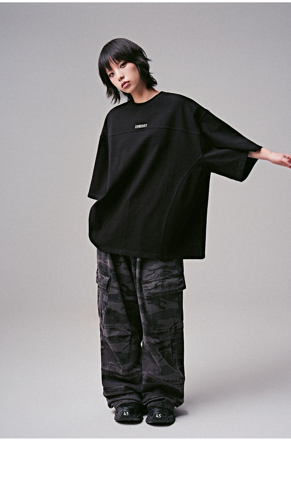VLAD 피그먼트 슬래쉬 반팔 티셔츠_차콜