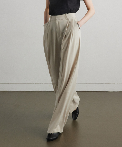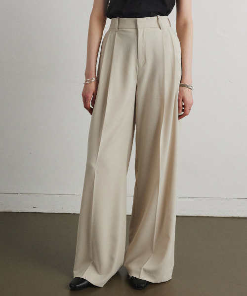 FLOW TUCK WIDE SLACKS_BEIGE
