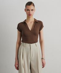 COLLAR RIB HENLEY T-SHIRT_BROWN
